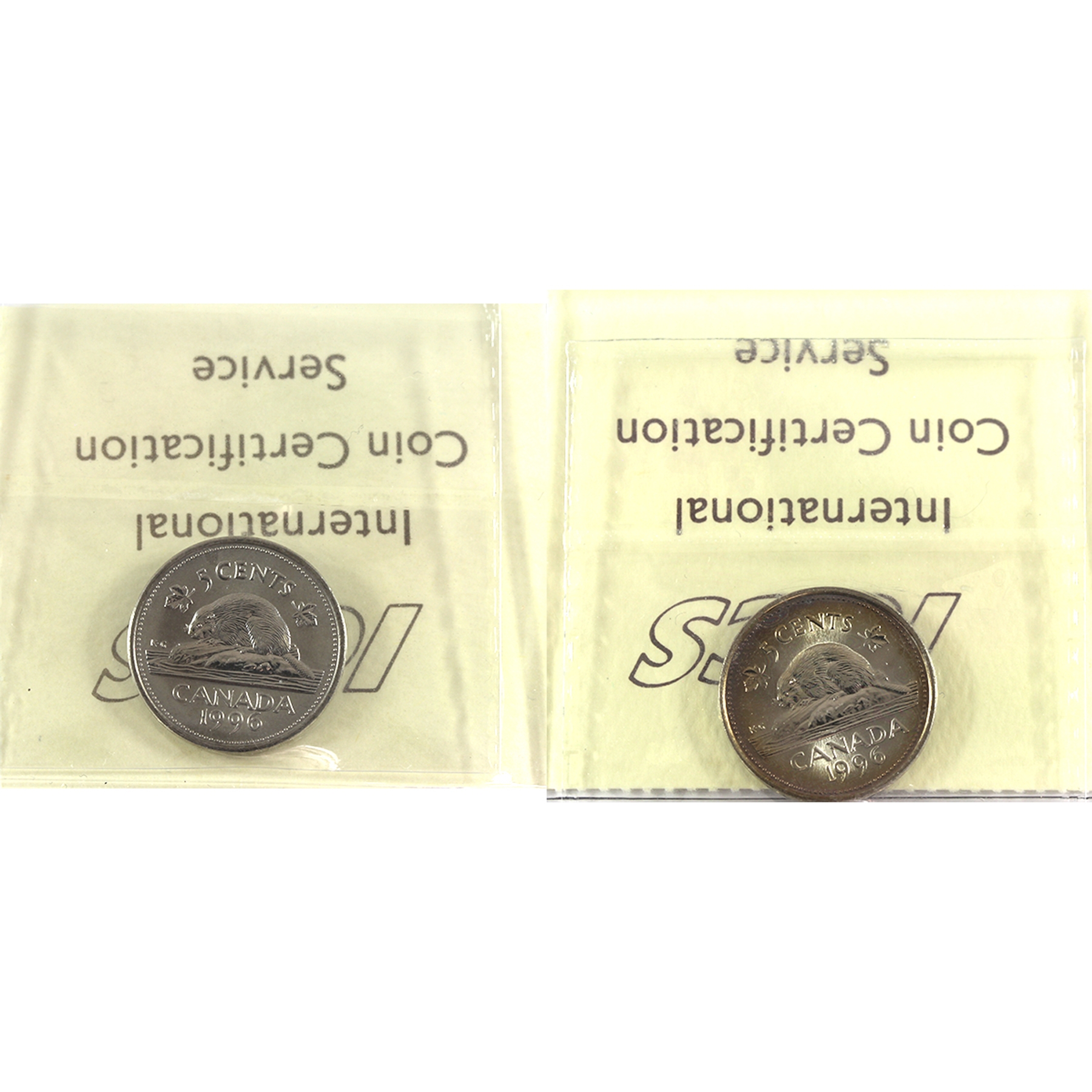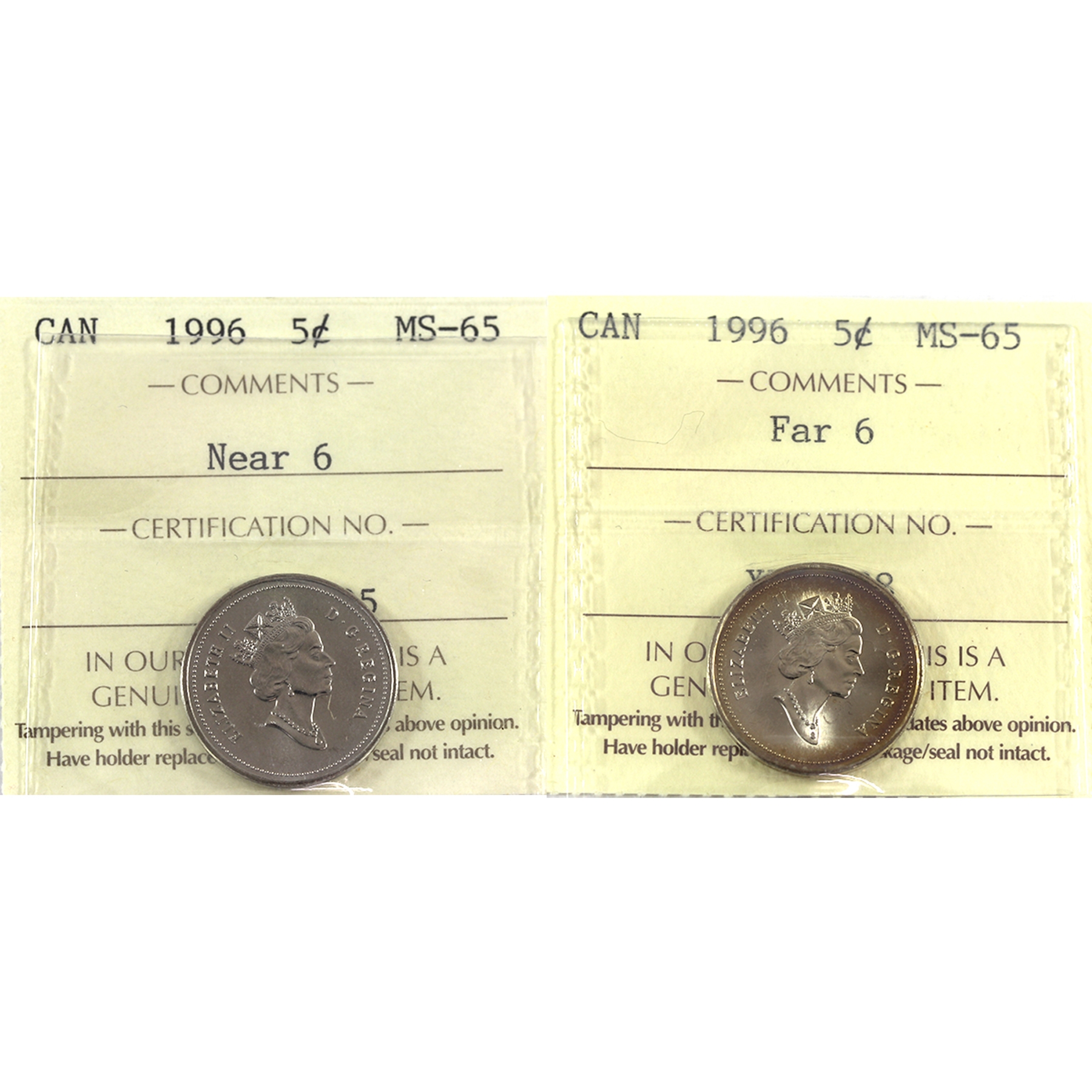 5-cent 1996 Near 6 & Far 6 ICCS MS65. 2pcs