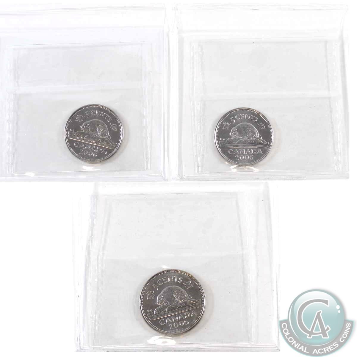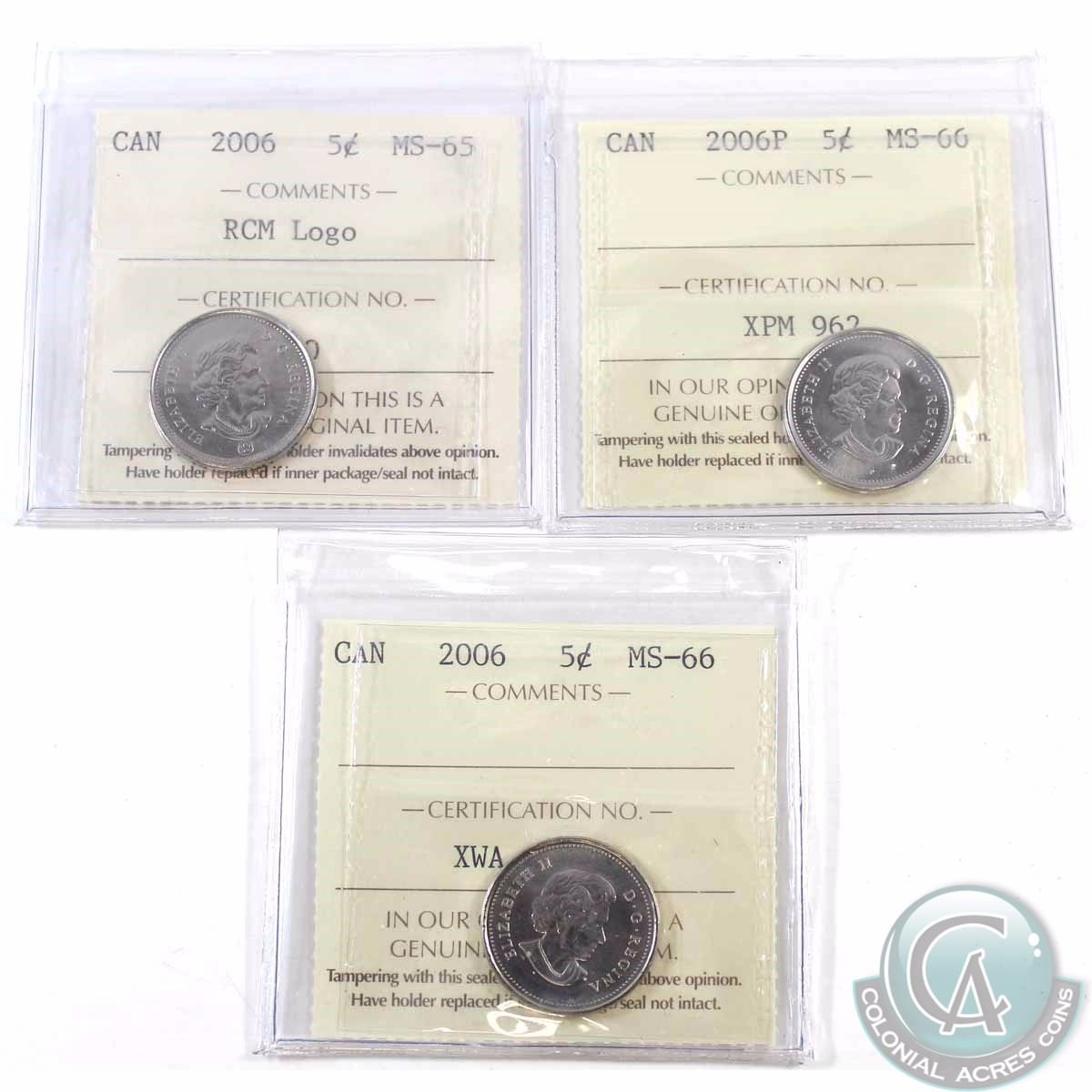 5-cent 2006P MS-66, 2006 RCM Logo MS-65 & 2006 MS-66. 2006 RCM logo has some sticker residue on the