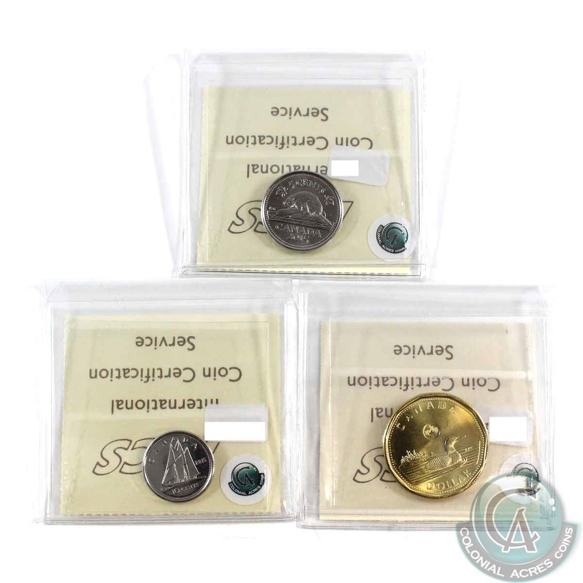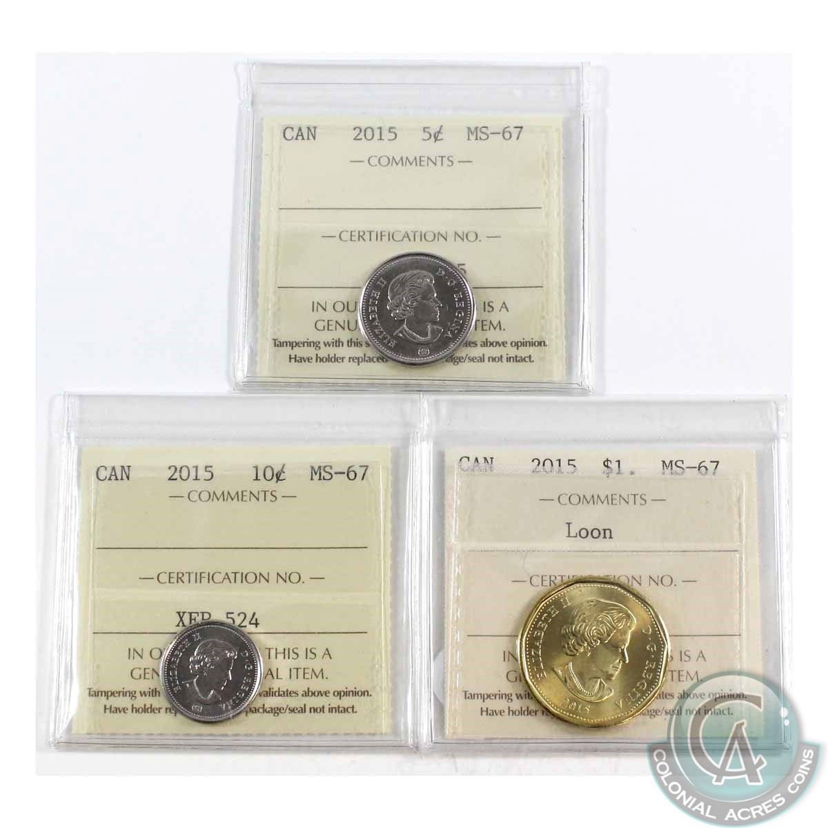 5-cent 2015, 10-cent & Loon $1 ICCS Certified MS-67. 3pcs