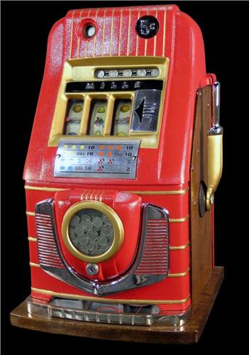5 cent, "Mills" hi-top slot machine with round jackpot<BR><b>Due to laws regulating the sale of antique slot machines, I, as the seller, will not sell to members in the states of Alabama, Connecticut, Hawaii, Indiana, Nebraska, South Carolina, and Tennessee. Bids from members residing in any of these states will be cancelled.</b>