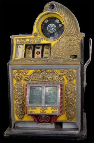 5 cent, "Watling" Rol-A-Top slot machine all original condition... never restored...<BR><b>Due to laws regulating the sale of antique slot machines, I, as the seller, will not sell to members in the states of Alabama, Connecticut, Hawaii, Indiana, Nebraska, South Carolina, and Tennessee. Bids from members residing in any of these states will be cancelled.</b>