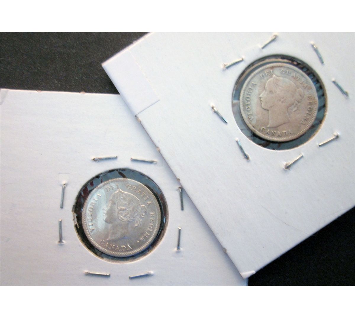 5 cents 1874H Small Date AU-55 & 1874H Large Date VG-8. Lot of 2 coins.