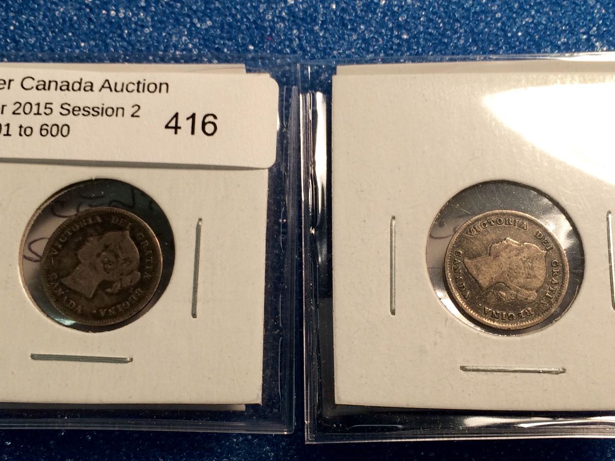 5 cents 1881H and 1891 both coins in VG-8. Lot of 2 coins.