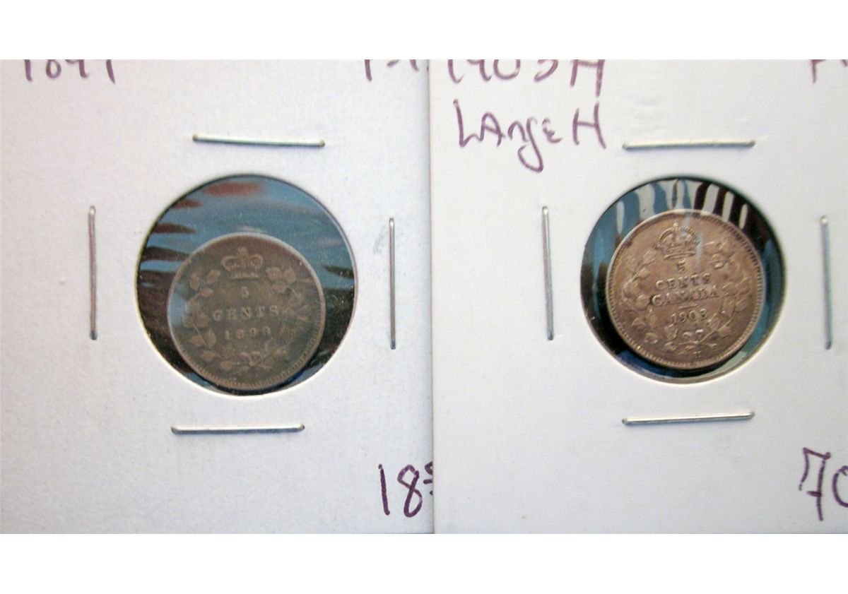 5 cents 1899 F-15 High 99 & 1903H F-15 Large H. Lot of 2 coins.