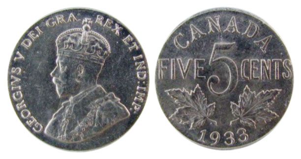 5 cents 1933 CCCS MS-64. Rare for grade, lustrous issue with 8 beads visible.