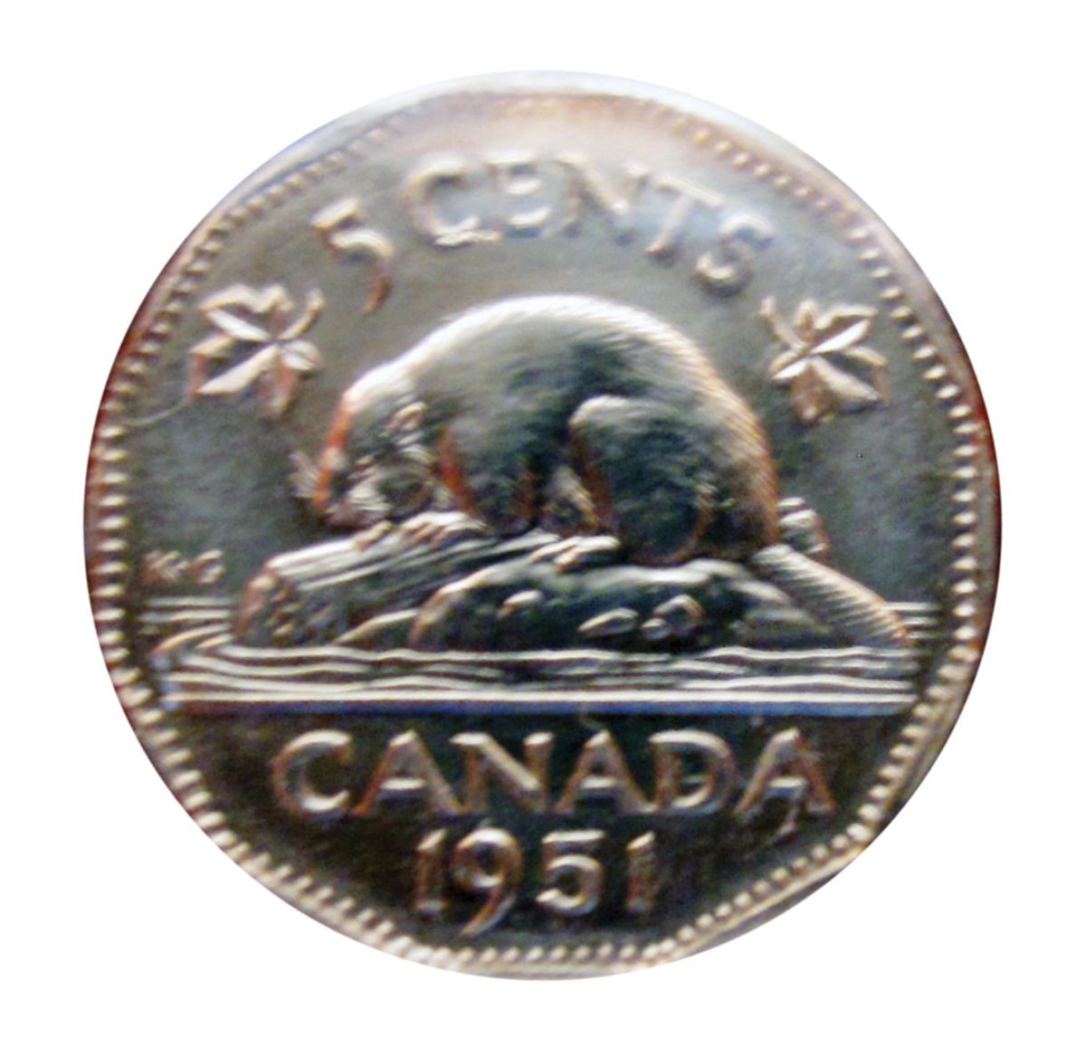 5 cents 1951 Low Relief, Missing Chrome CCCS MS-62. Designated cleaned.