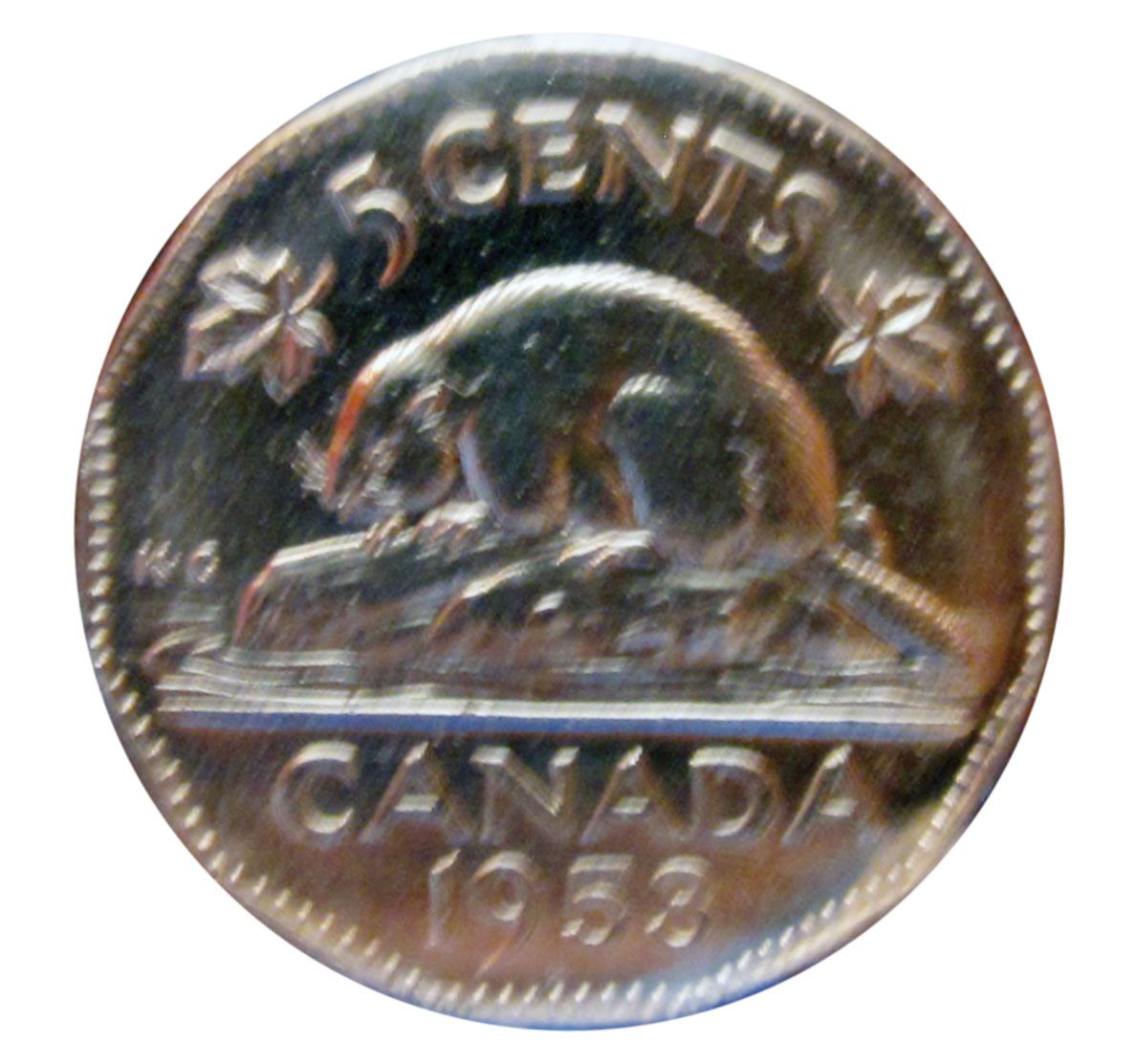 5 cents 1953 No Shoulder Fold, Far Leaf, Missing Chrome CCCS MS-60. Designated Cleaned.