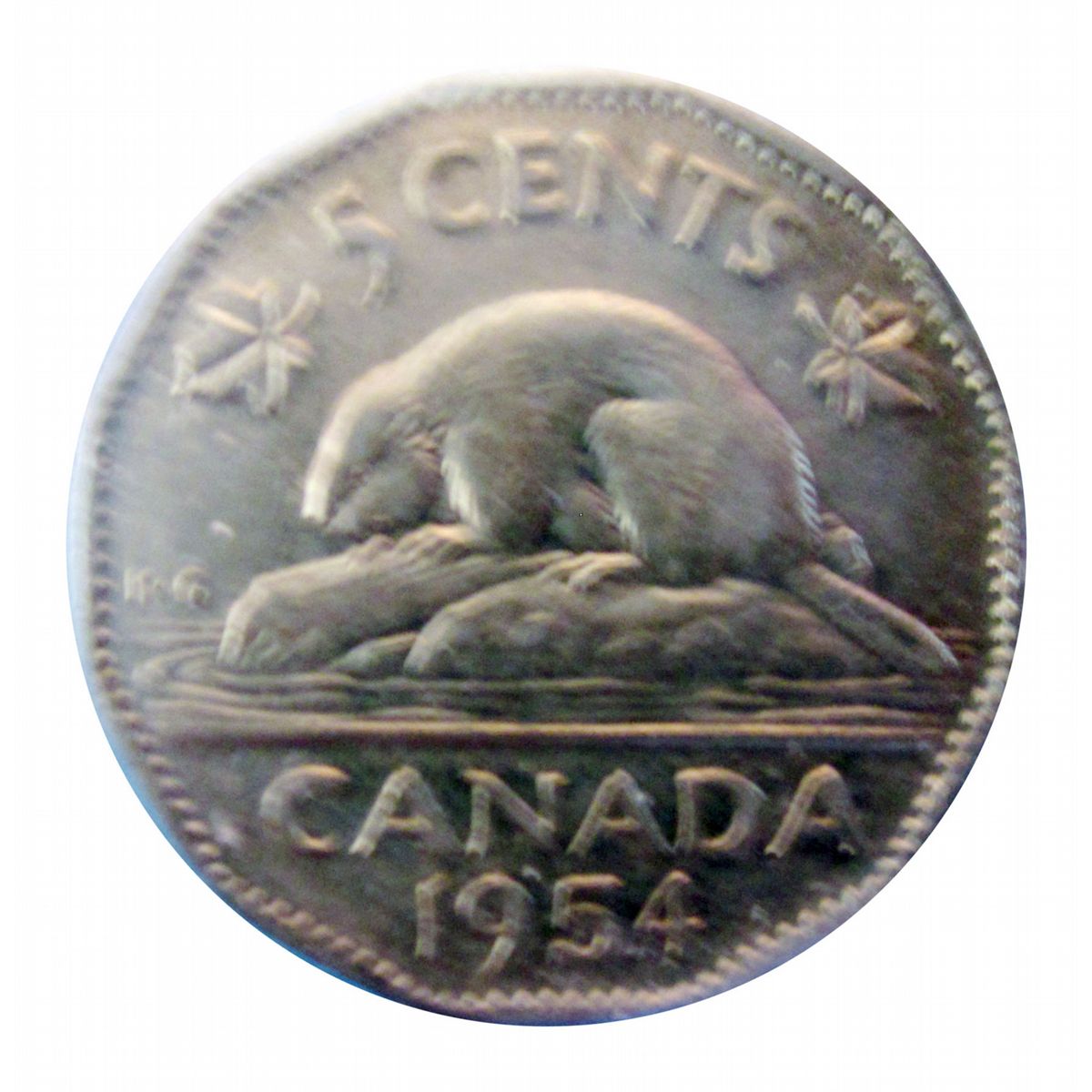 5 cents 1954 CCCS VF-30; Missing Chrome.