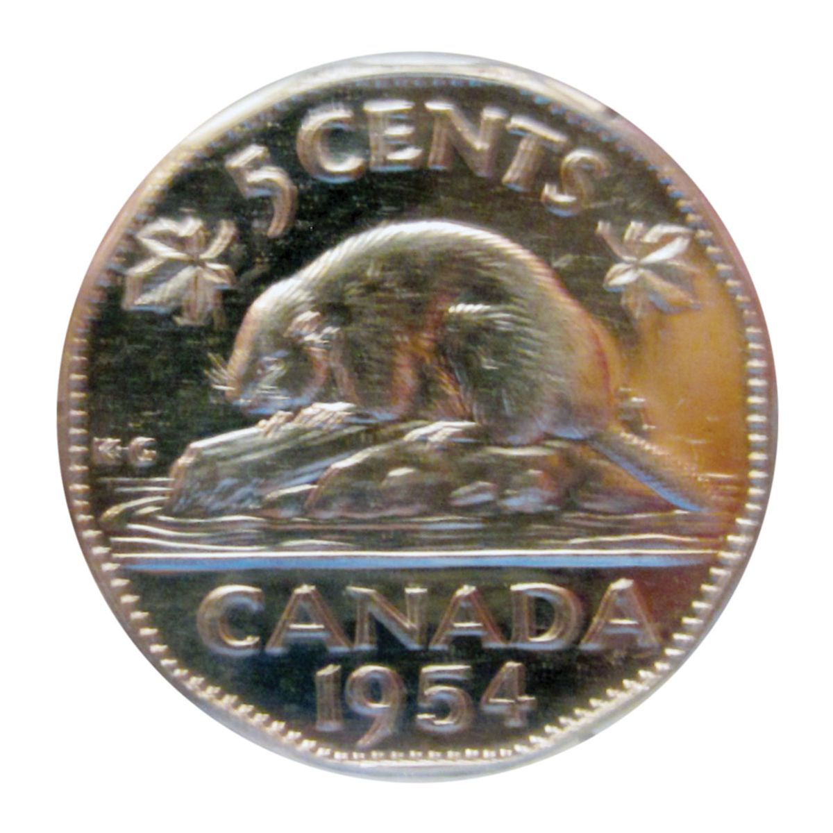 5 cents 1954 Shoulder Fold, Missing Chrome CCCS MS-60.