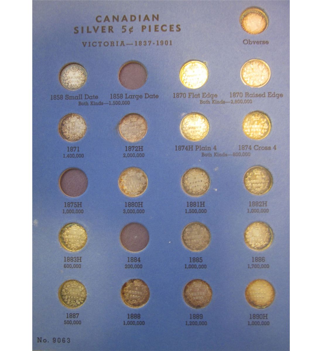5 cents silver lot; 1858 to 1920, missing 1858 LD, 1875H, 1884 with 3 extras for obverses, condition VG to UNC with a few choice in there, a few cleaned, to be viewed, lot of potential. Lot of 48 coins.