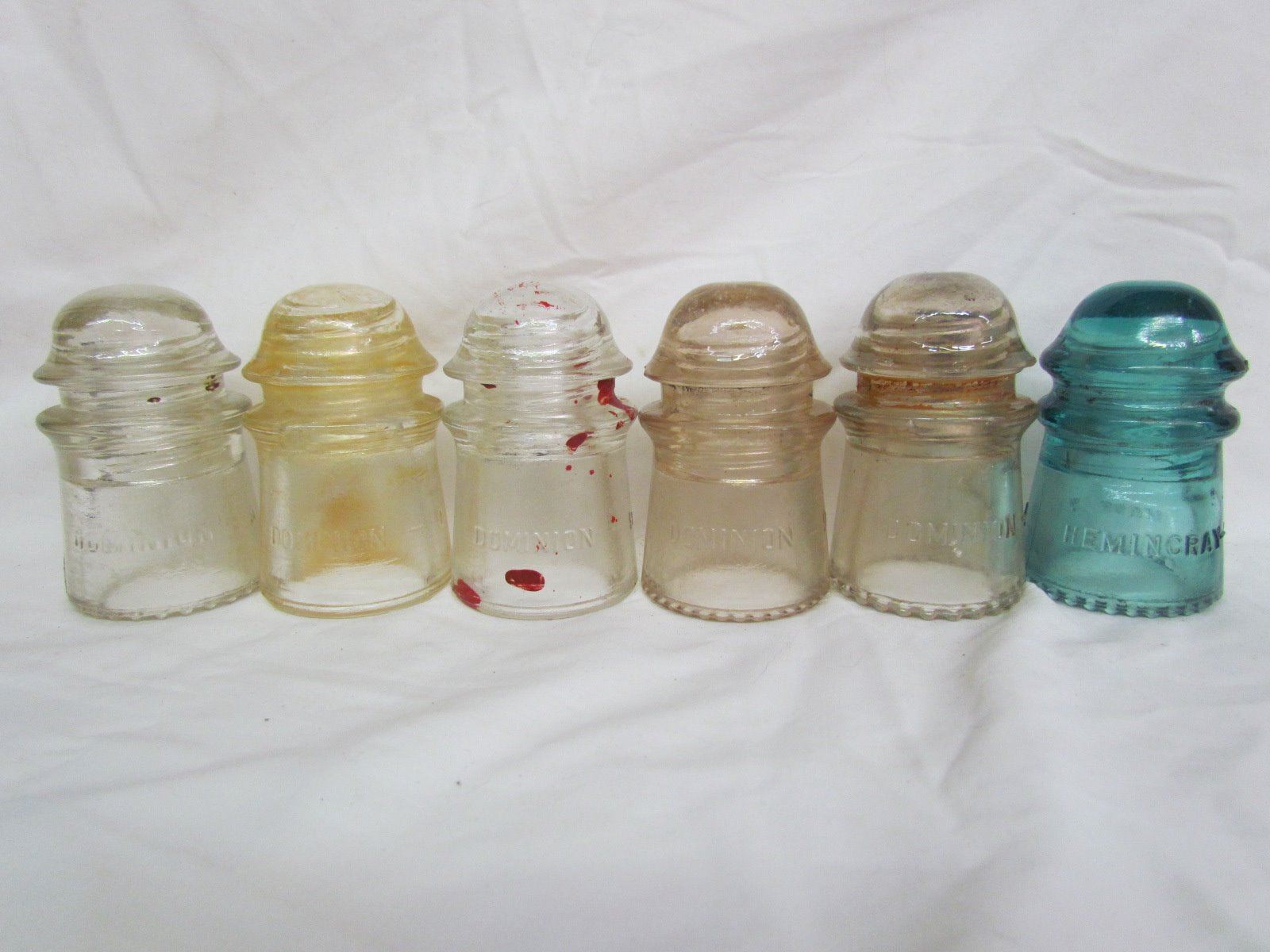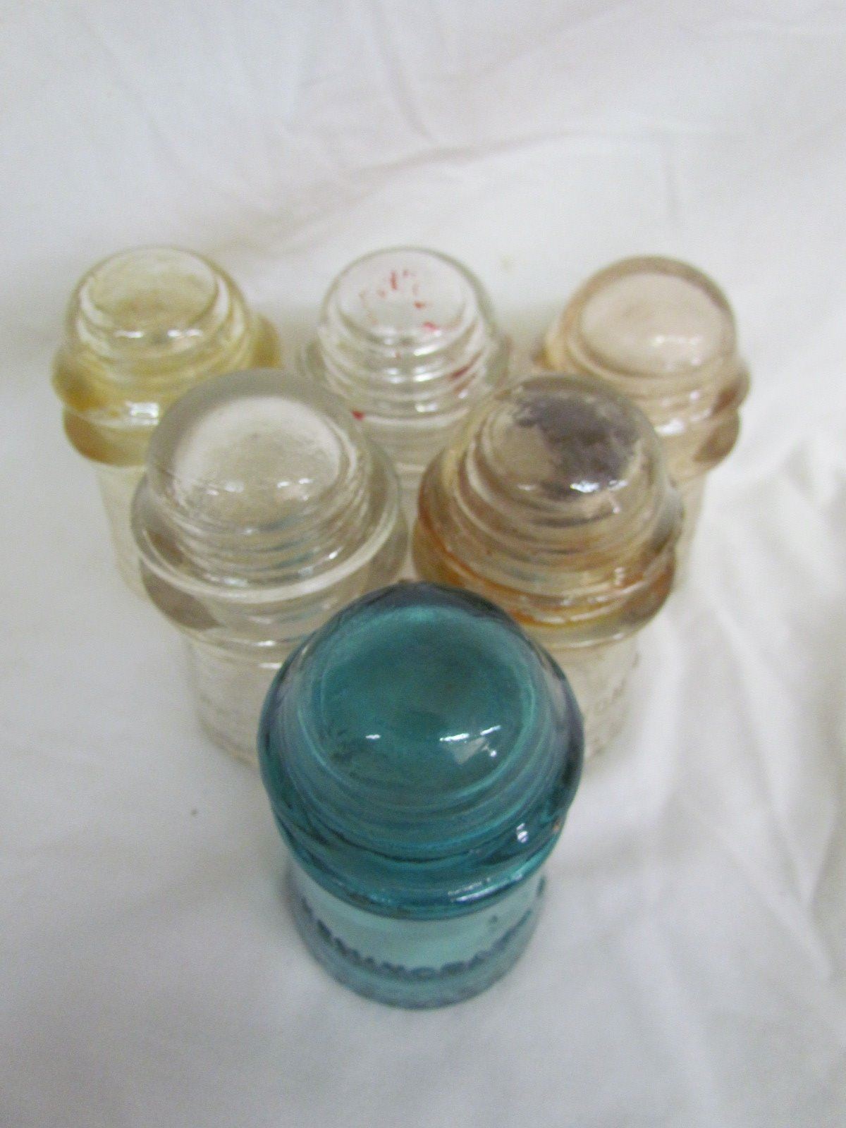 5 clear #9 Dominion, 1 blue Hemingray insulators