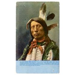 Most with texts on recto. 1) James Lone Elk "nephew of Old American Horse. Participated in the 'Wounded Knee' fight in 1891 against the wishes of his uncle... " 2) Black Bird, son of the noted Chief Black Bird... 3) Little Wound. "Chief, is an aged indian fighter and white man hater. Has participated in all the principal battles of the Sioux race. His chief ambition has always been to success Chief Red Cloud." 4) Jack Red Cloud. "Son of the noted old chief Red Cloud.... His greatest hopes... are to succeed his father as chief... " and one other. [2] to [3-]