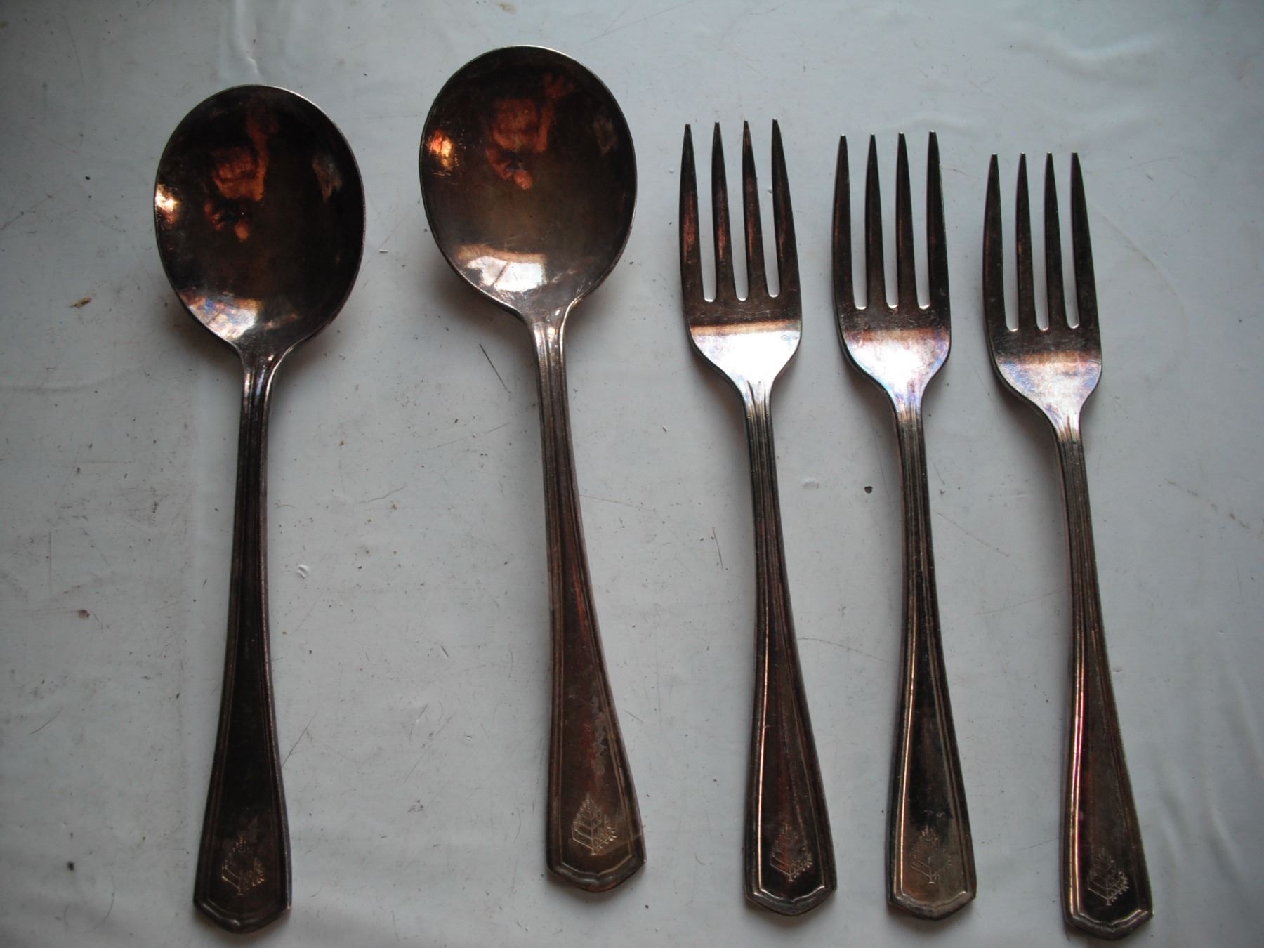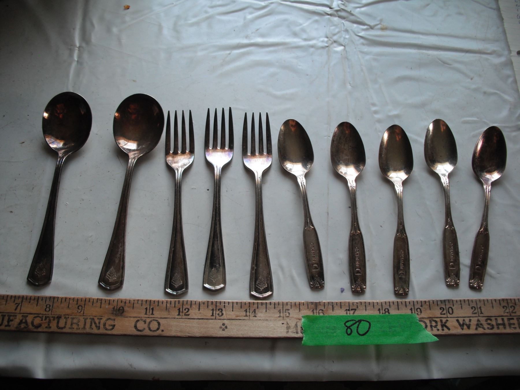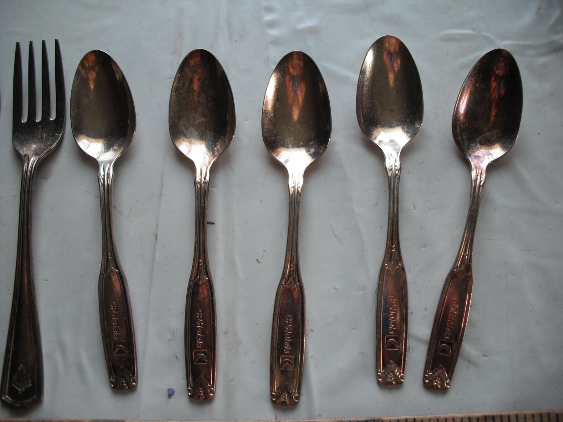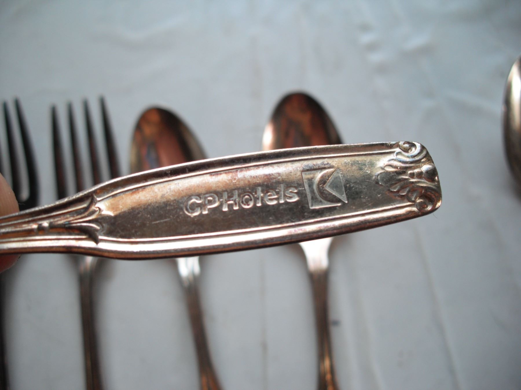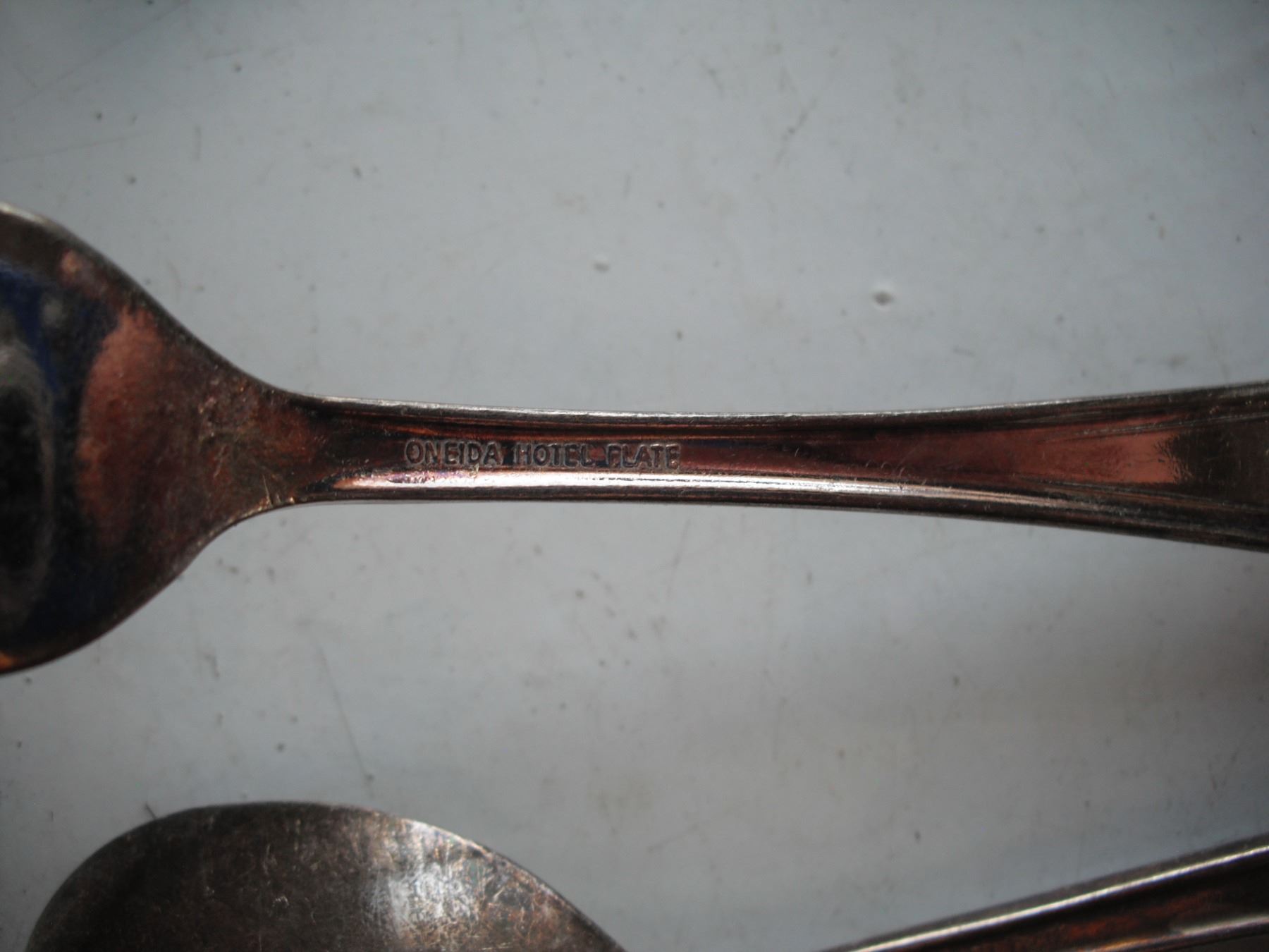 5 cp hotels oneida silversmiths spoons+ 5 oneida hotel spoons plate forks