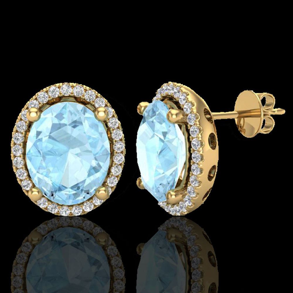 REF-102N8F - SKU: 21046 ---- 5 ctw Aquamarine & Micro Pave VS/SI Diamond Earrings 18k Yellow Gold
