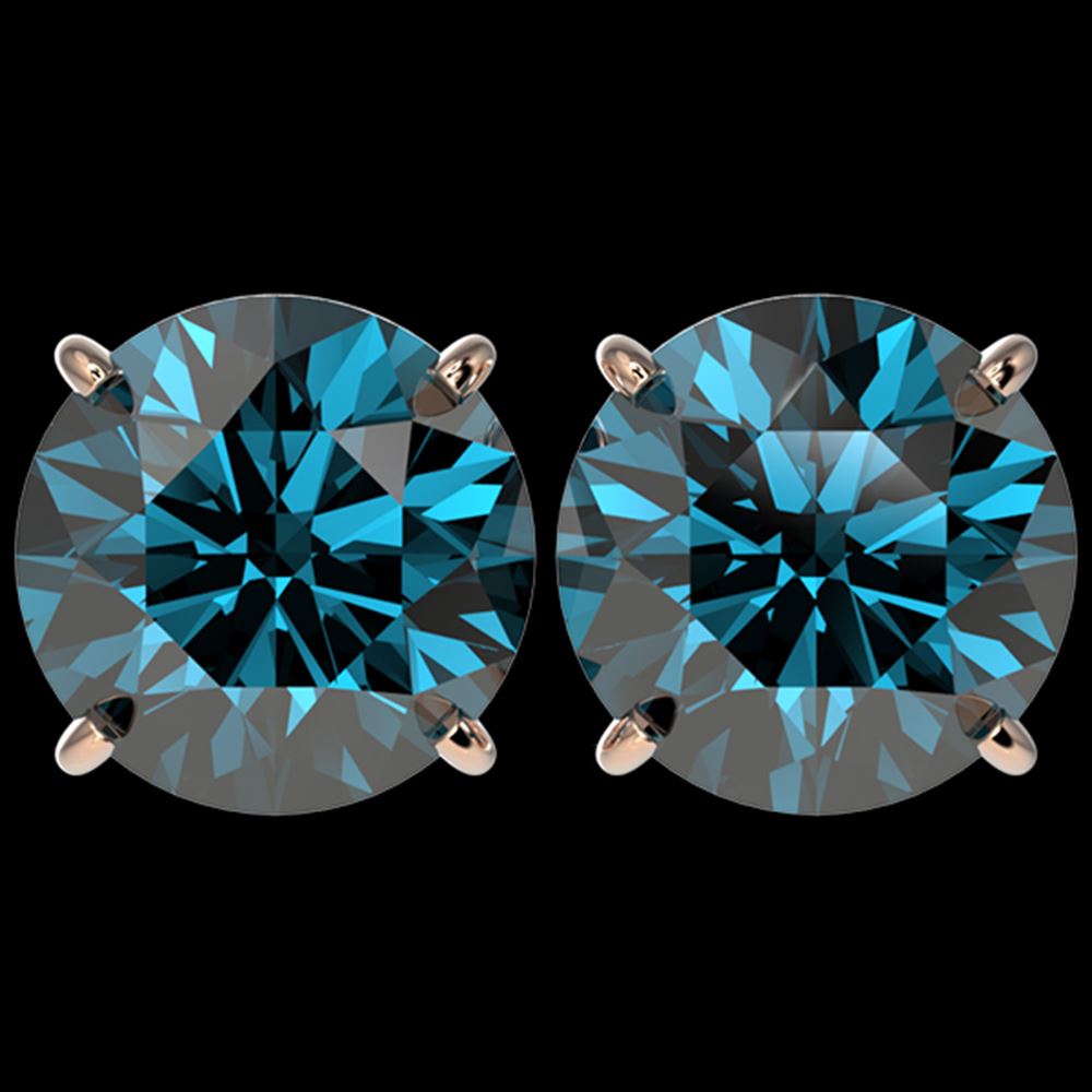 SKU: 33149 ---- 5 ctw Certified Intense Blue Diamond Stud Earrings 10k Rose Gold