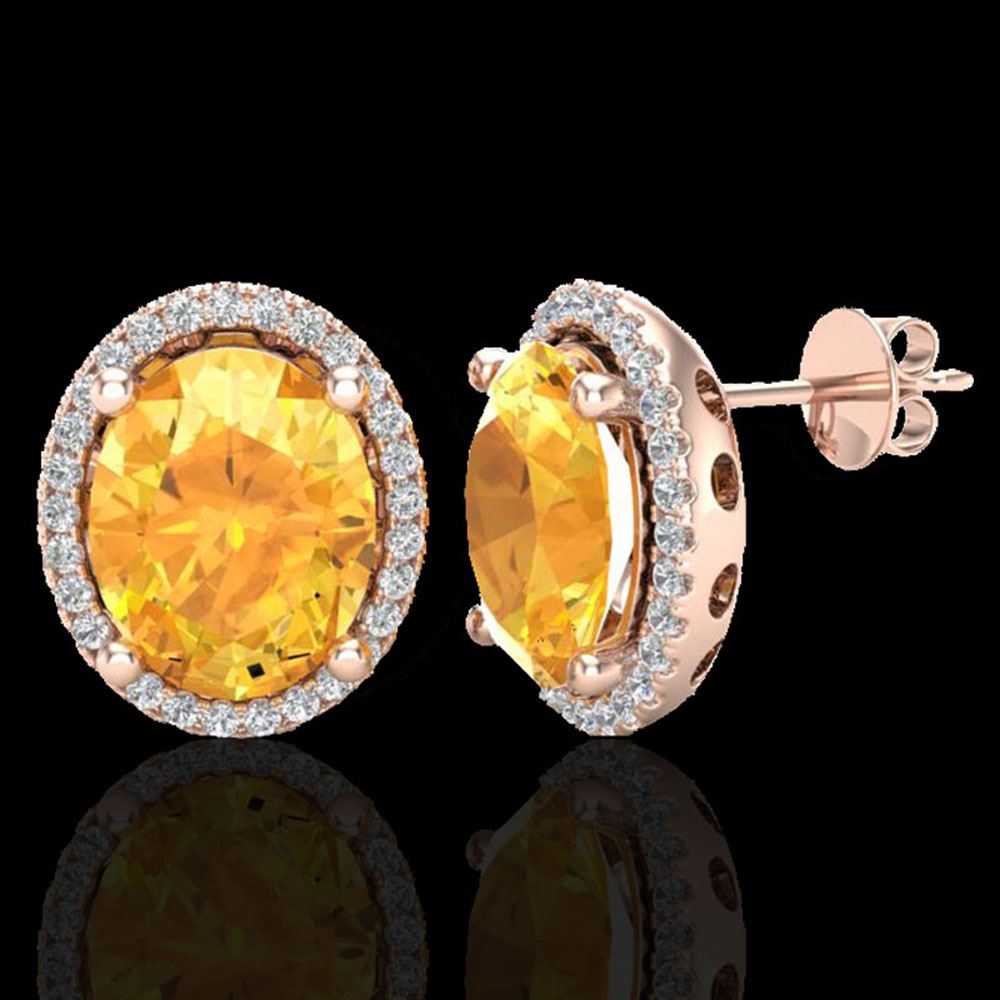 REF-52Y3X - SKU: 21050 ---- 5 ctw Citrine & Micro Pave VS/SI Diamond Earrings 14k Rose Gold