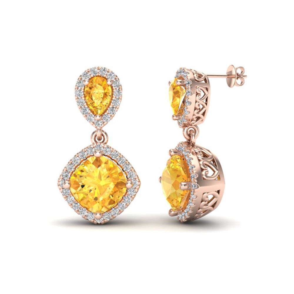 SKU: 20202 ---- 5 ctw Citrine & Micro Pave VS/SI Diamond Earrings Designer 10k Rose Gold