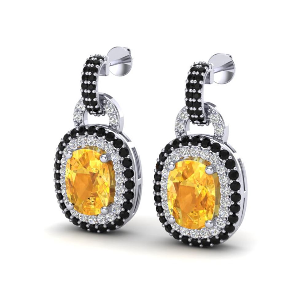 SKU: 20132 ---- 5 ctw Citrine With Black & Micro Diamond EARRINING 14k White Gold