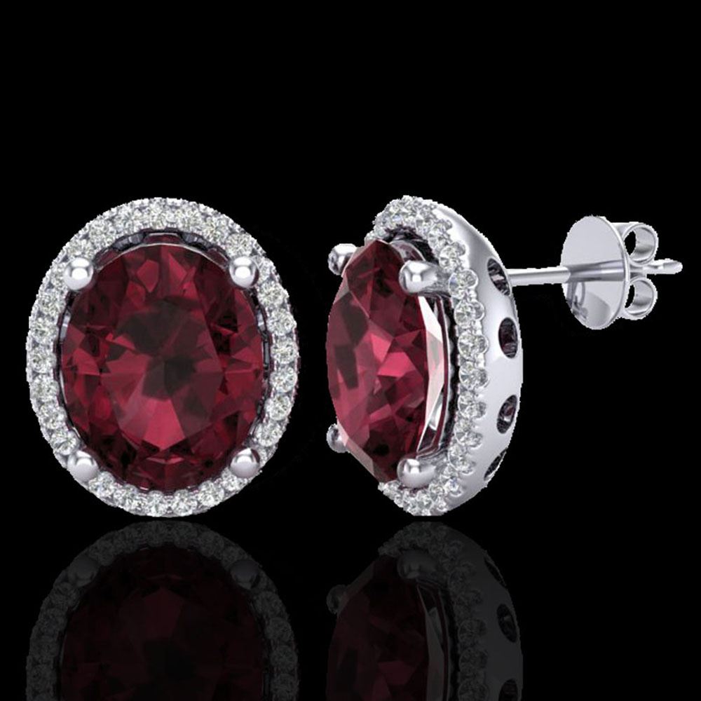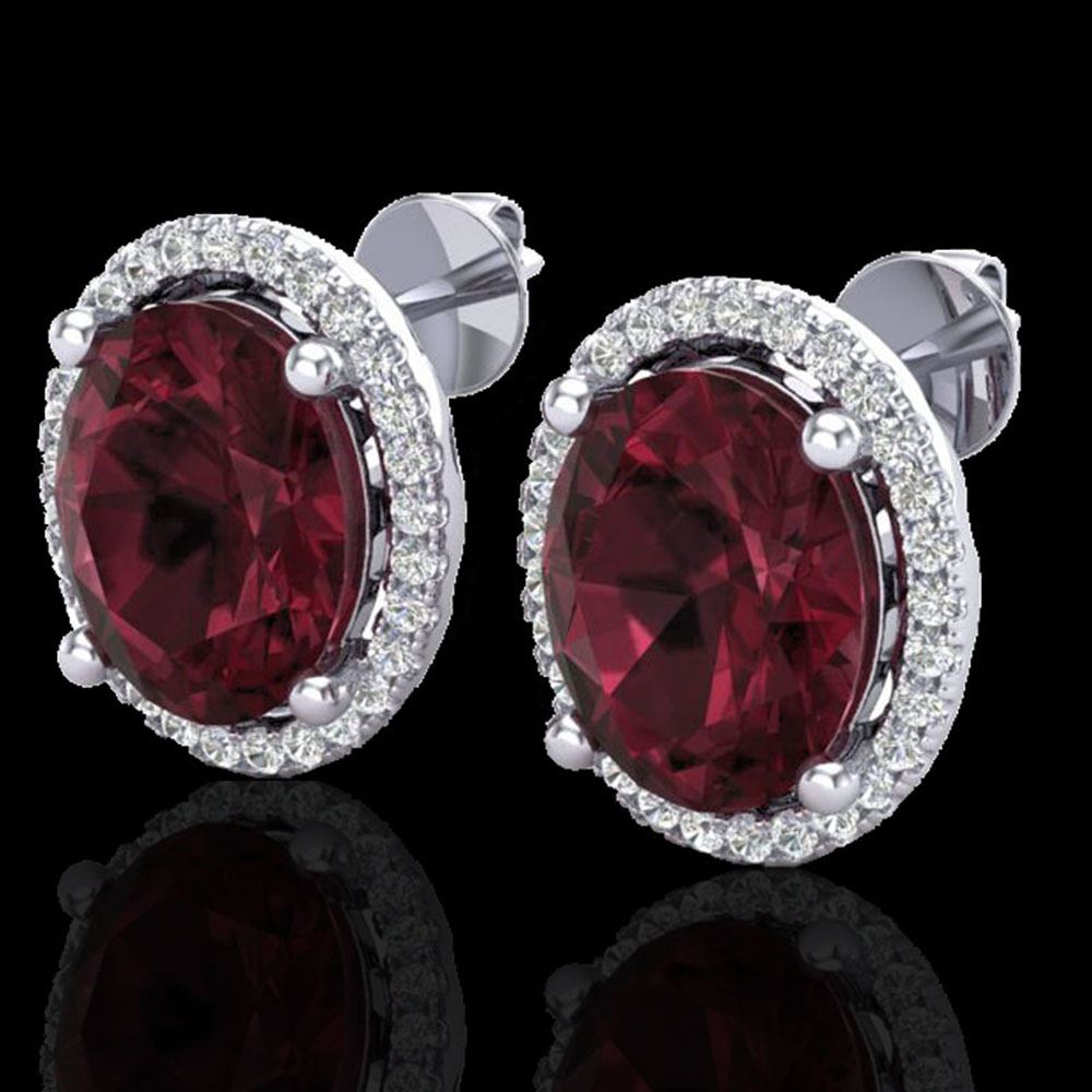 REF-72Y8X - SKU: 21056 ---- 5 ctw Garnet & Micro Pave VS/SI Diamond Earrings 18k White Gold