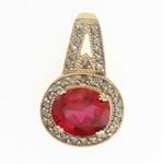 * Center Gem: 4 ct Faceted Oval Cut Lab Created Ruby * Accent Gems: 1 ctw Brilliant Round cut Diamonds * 100% Genuine Natural Diamonds * Setting Type: 10K Solid Yellow Gold Slider Pendant * Metal Type: Solid Yellow Gold * Metal stamp: 10K * 'Solid Gold' Pedant - 'Not' Plated Base Metals! * Size: 27.5 x 17.5 mm (LxW) * Pendant Only - No Chain