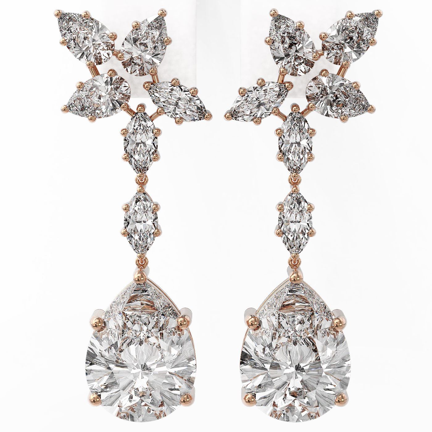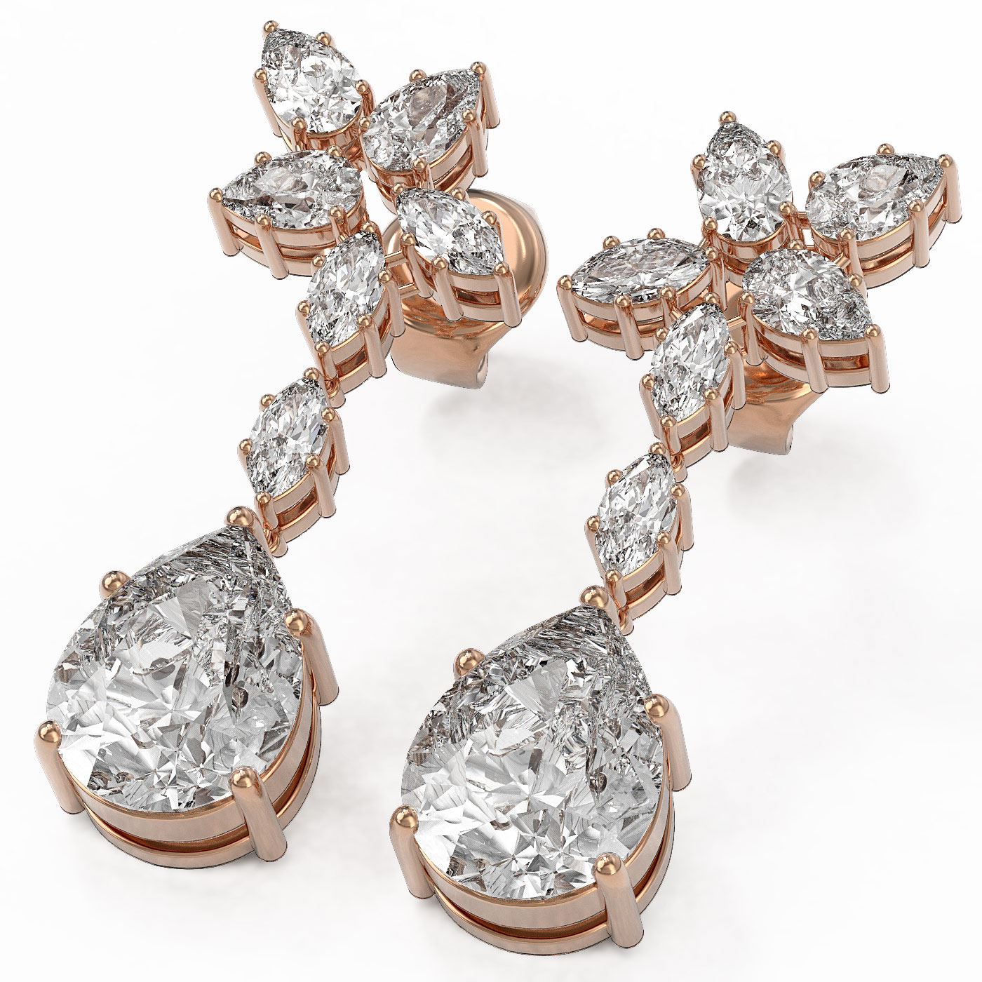 5 ctw Pear and Marquise Cut Diamond Earrings 18K Rose Gold