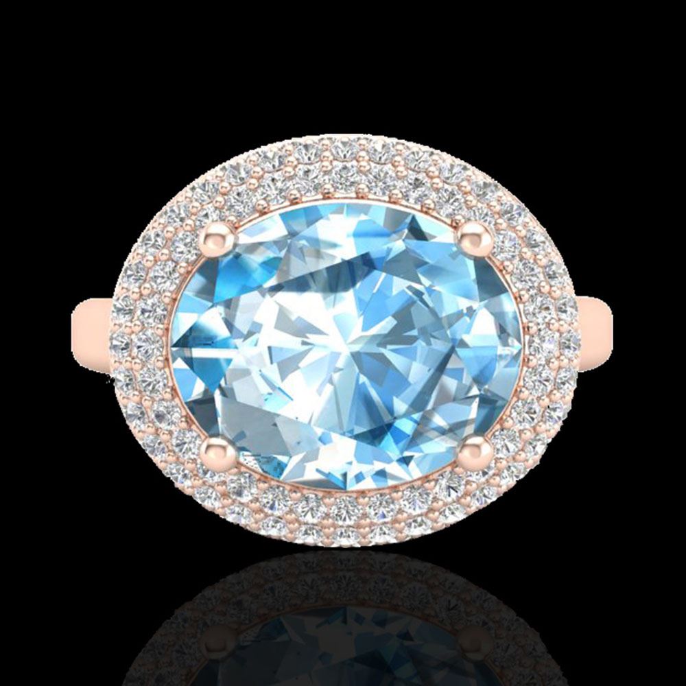 REF-90A2N - SKU: 20907 ---- 5 ctw Sky Blue Topaz & Micro Pave VS/SI Diamond Ring 14k Rose Gold