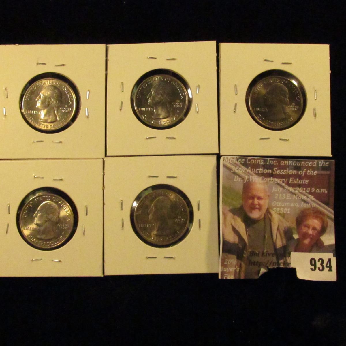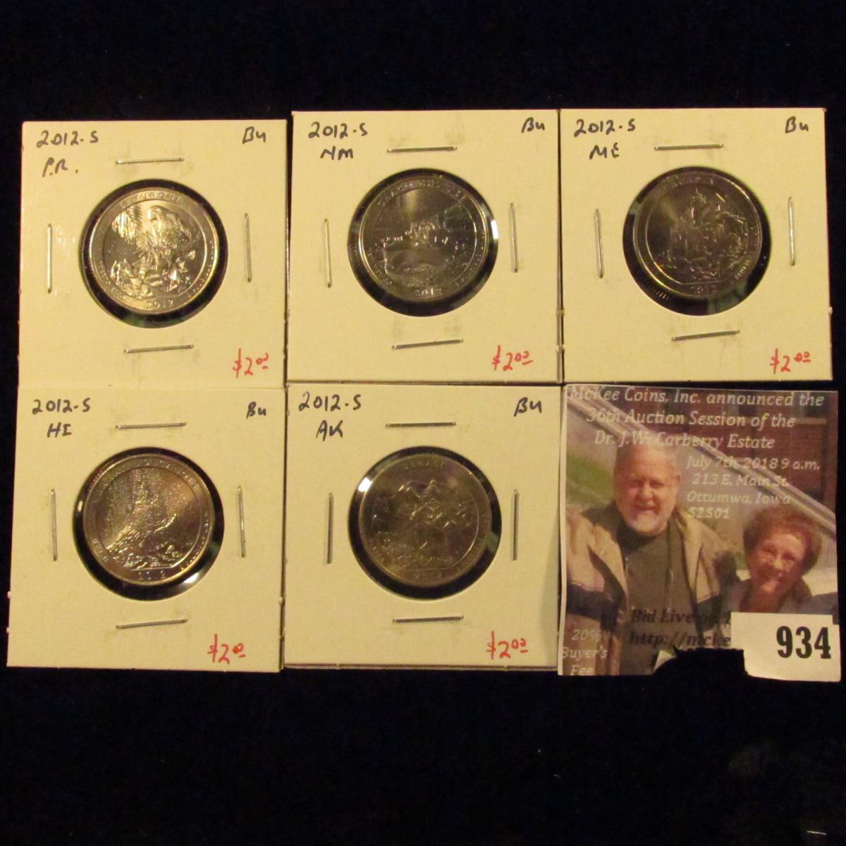 (5) different 2012-S Washington ATB Quarters, non-proof (uncirculated strike) quarters, low mintage,