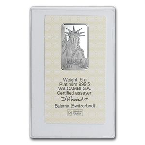 5 gram Credit Suisse Platinum Bar (in Assay) .999+ Fine **|**|** Year: N/A ; Mint Mark: None ; Grade: N/A ; Denomination: N/A ; MSRP: $500