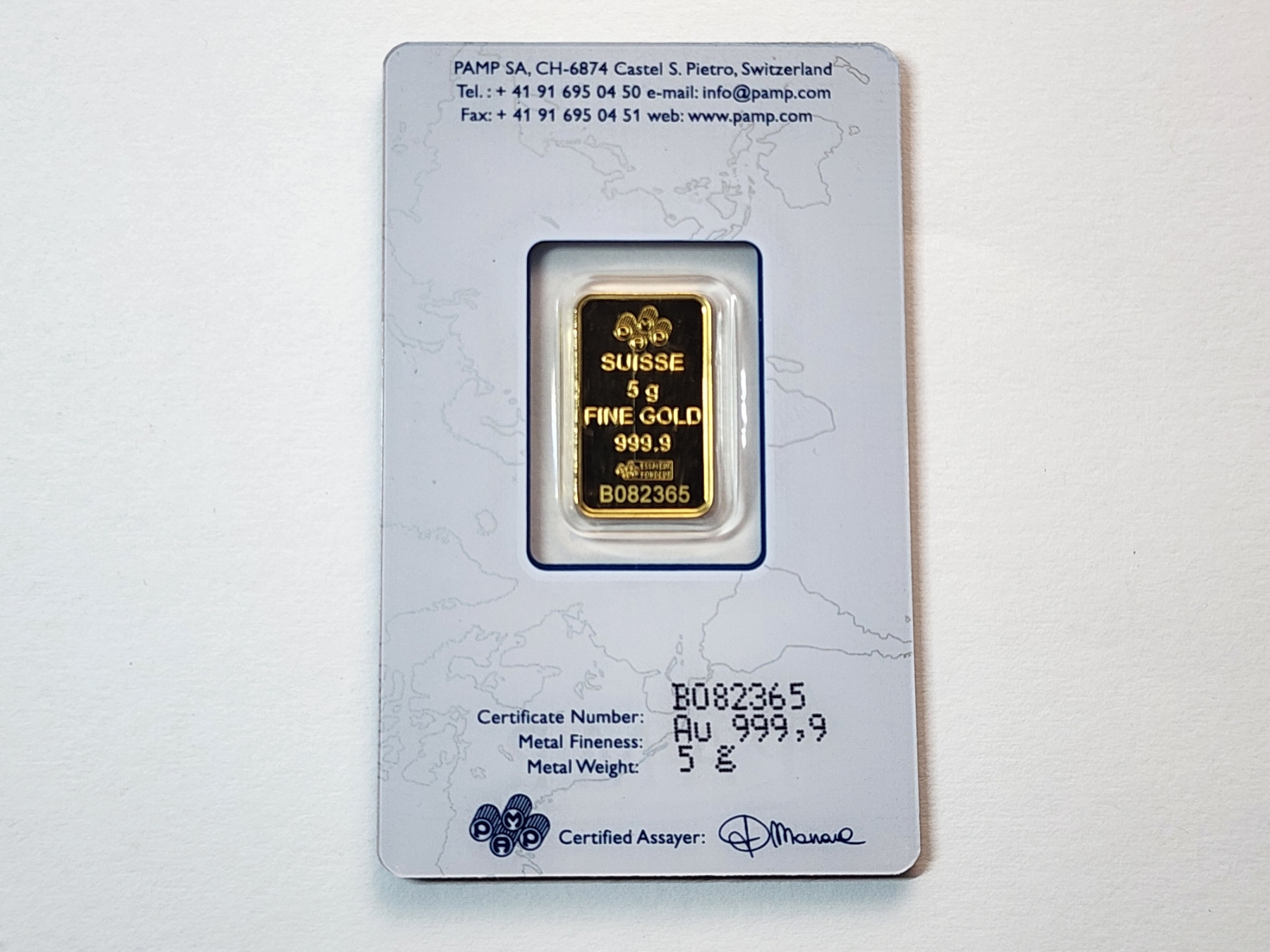 5-gram PAMP Swiss 999.9 Fine Gold Bar - Certified in Sealed Package