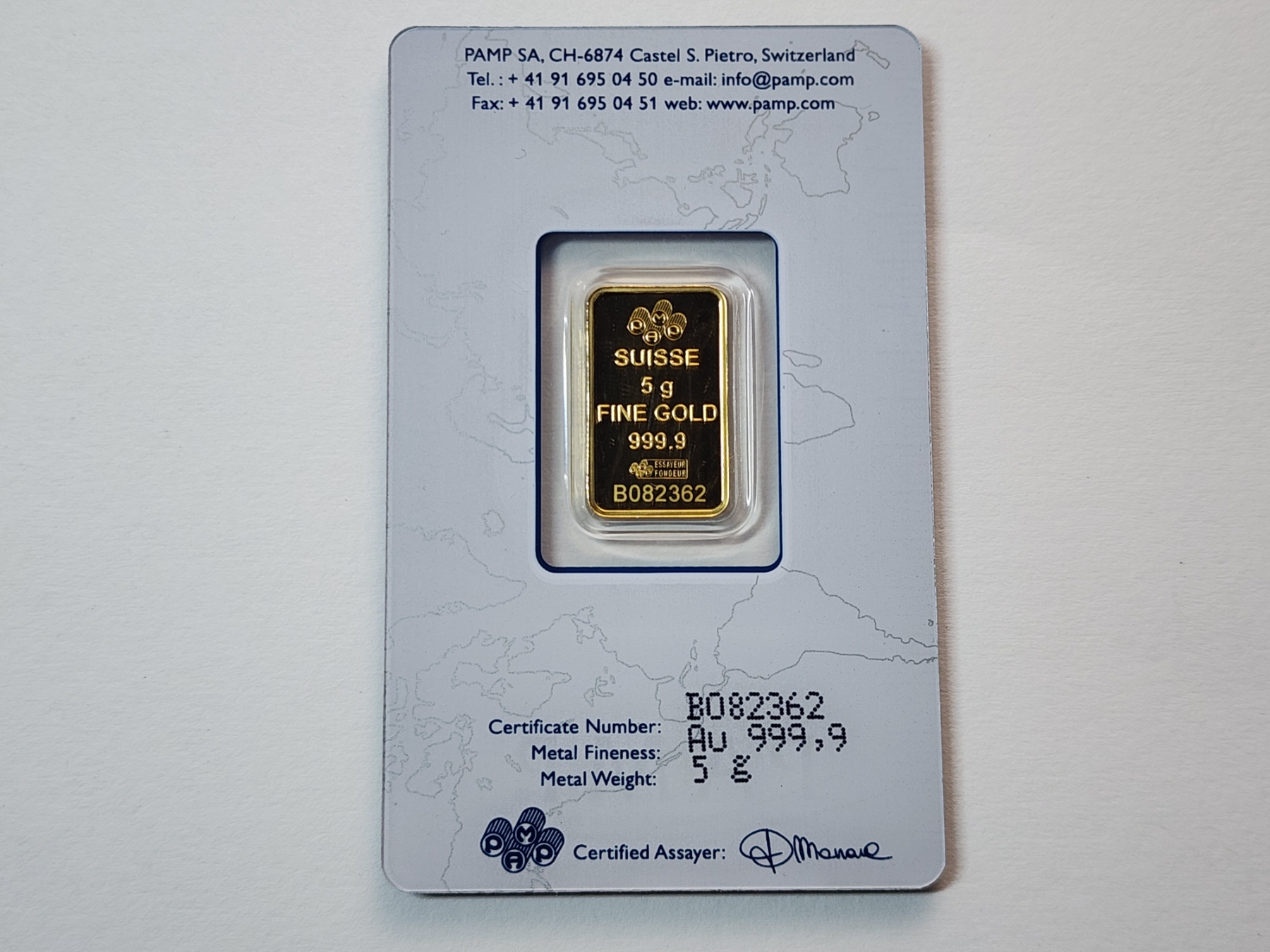 5-gram PAMP Swiss 999.9 Fine Gold Bar in Certified and Sealed Package