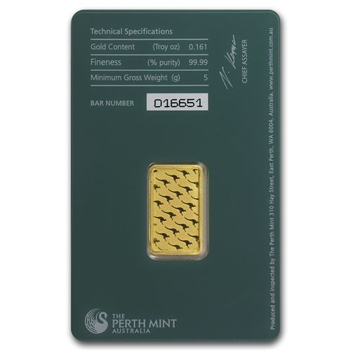 5 gram Perth Mint Gold Bar .9999 Fine (In Assay) **|**|** Denomination: 1 ; MSRP: $400
