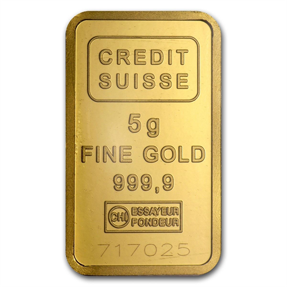5 gram Statue of Liberty Credit Suisse Gold Bar .9999 Fine