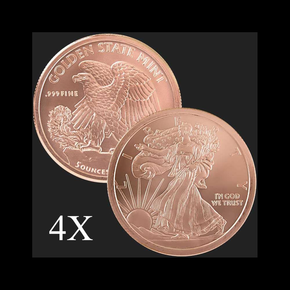 4 units of 5 oz Walking Liberty .999 Fine Copper Round