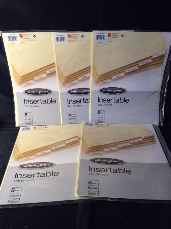 5 packs Wilson Jones insertable tab dividers five tab clear 8 1/2“ x 11“ three hole punched