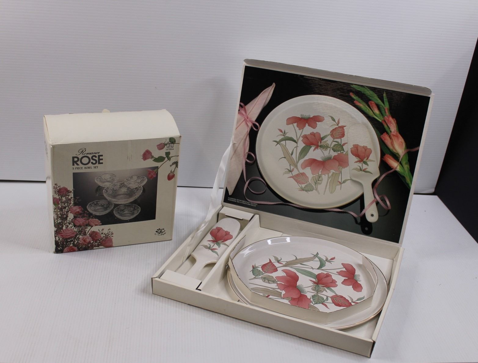 (5 pc) Romance Rose Bowl Set (NIB) & Century Serving Platter w/Pie Server (Appears NIB)