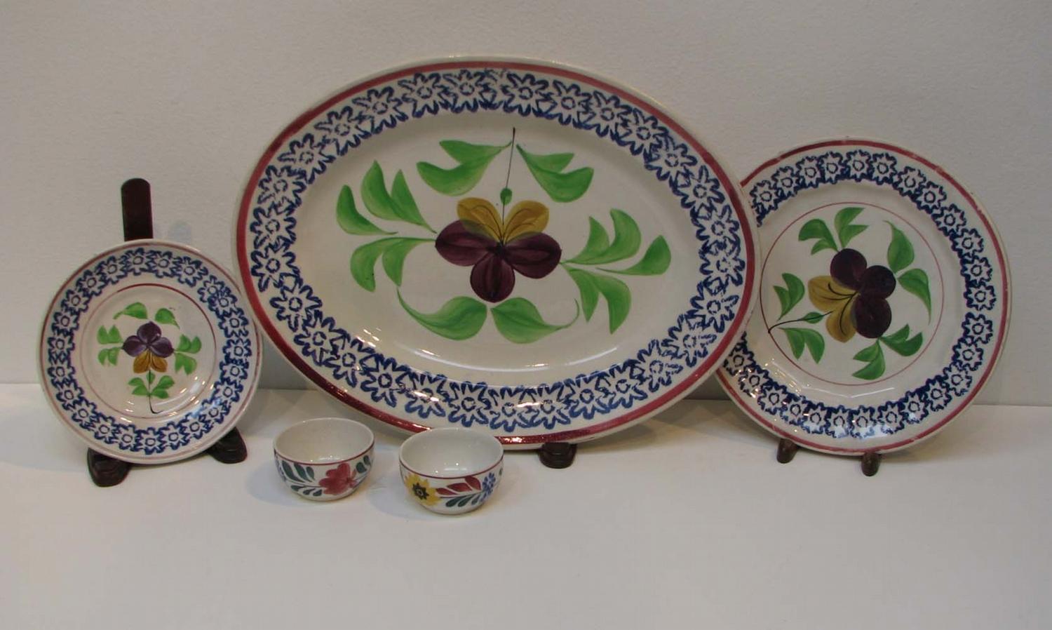 Title: Assorted Sticks Spatter including: 2 demitasse, 1 bread plate, deep saucer, 1 oval platter