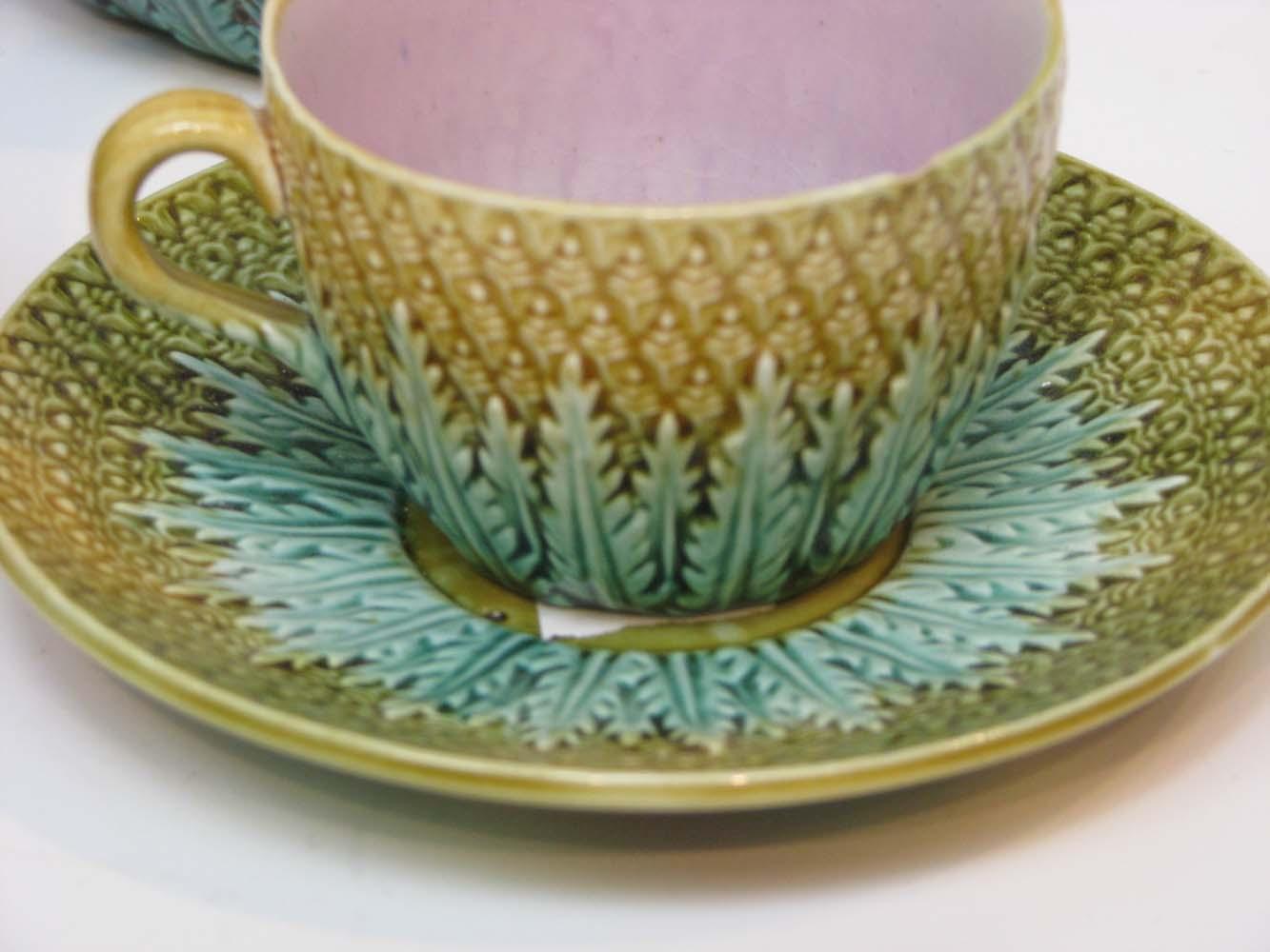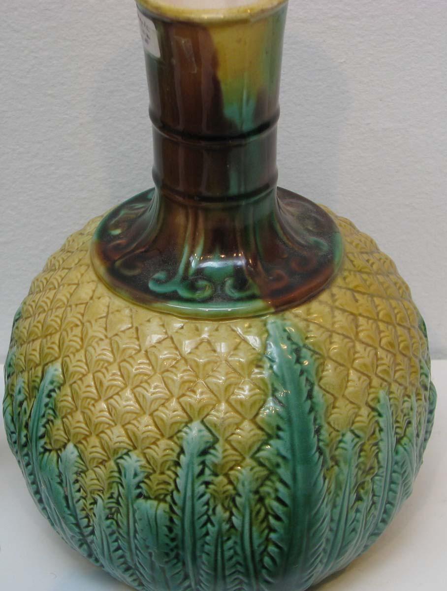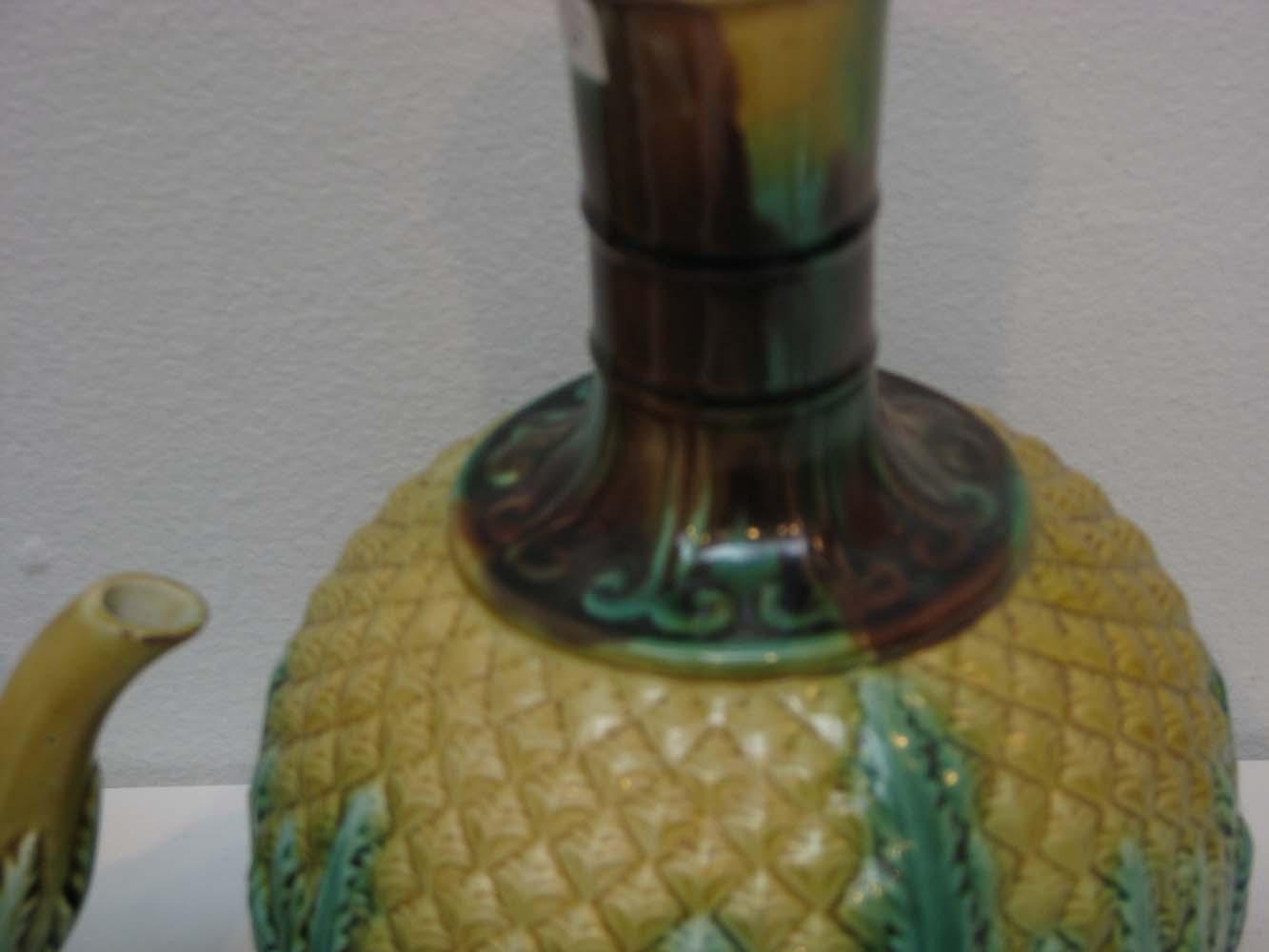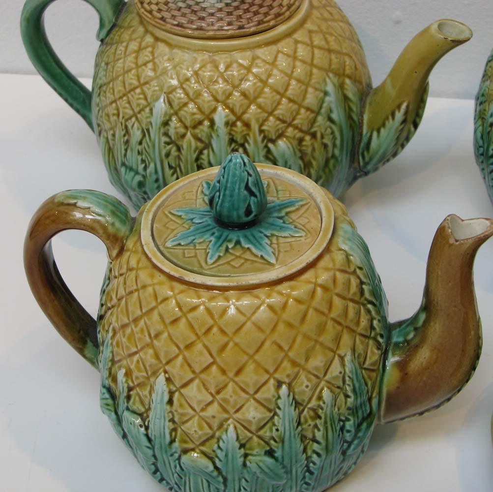 Title: 5 pcs Quilted Majolica with Pineapple Pattern including: vase, teapot, coffee pot, cup and saucer