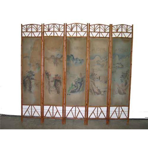 This 5-piece bamboo screen has 5 beautiful scenery paintings to match 5 famous ancient poetry, consolidating a variety into one rare art work. Well preserved in its original condition. More photos will be available upon your request.
