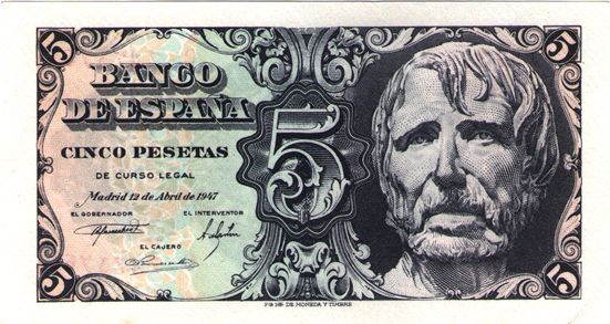 5 pesetas. 4-1947. Serie C. ED-D55a. Plancha.