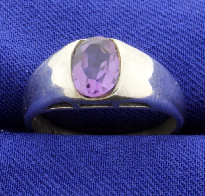 Ring has a gem amethyst oval and is a size 8. 64.3g