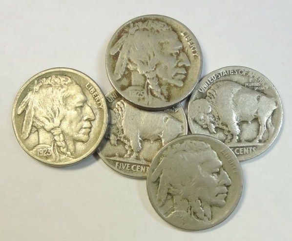 5 scarce Buff Nickels,14-S V,23-S F+,24-S Key VG,26-S Key F,25-S VF
