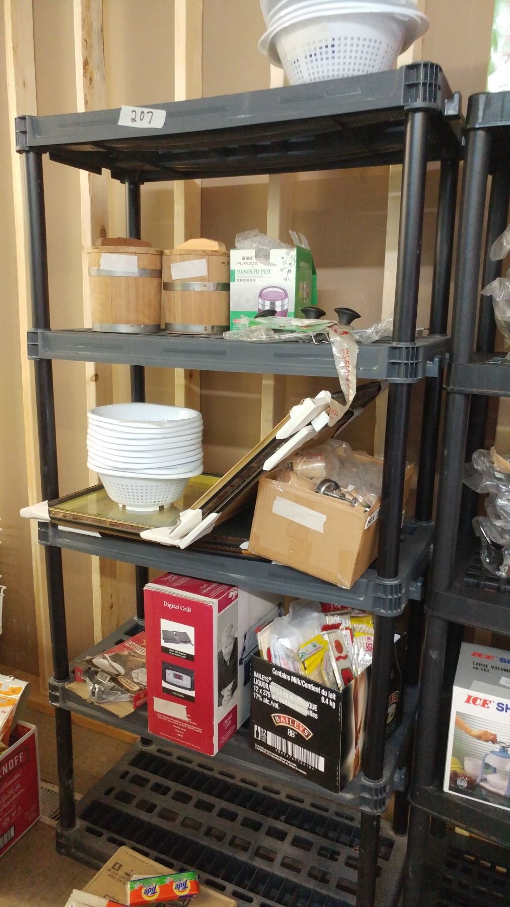 5 shelf plastic shelving 75"T x 36"W (contents not included)