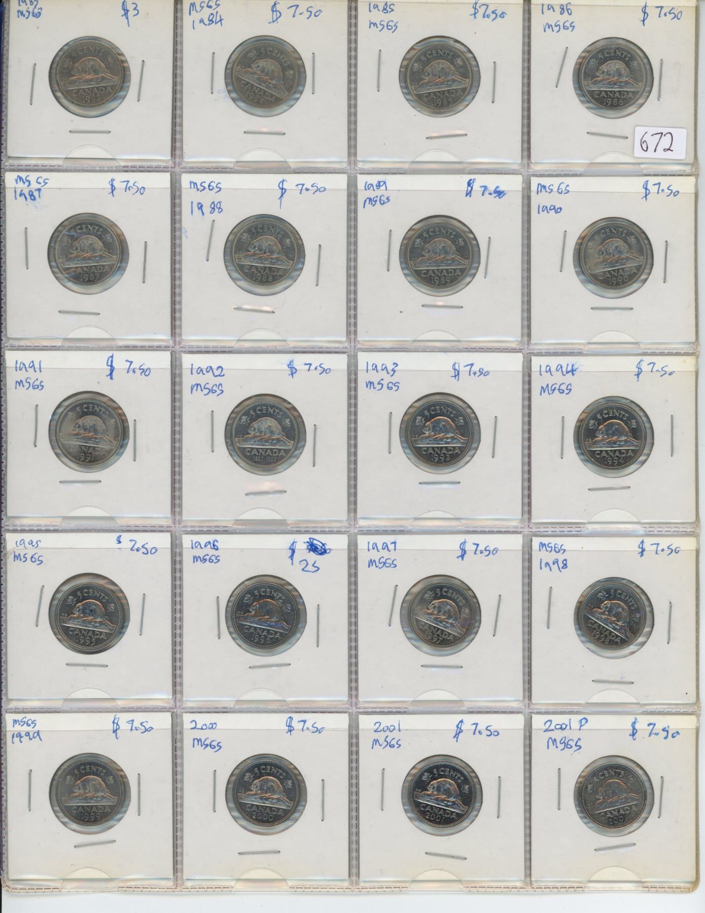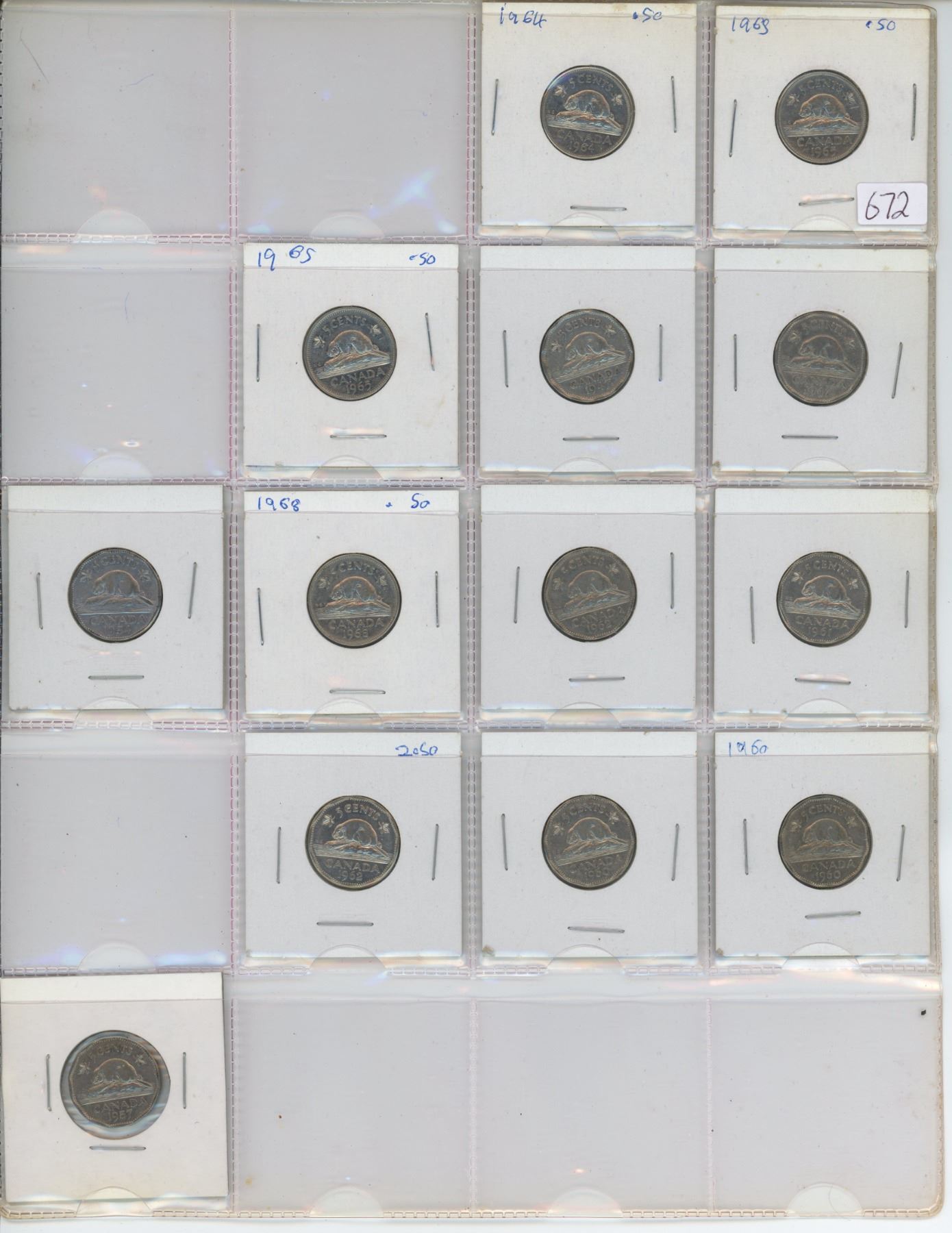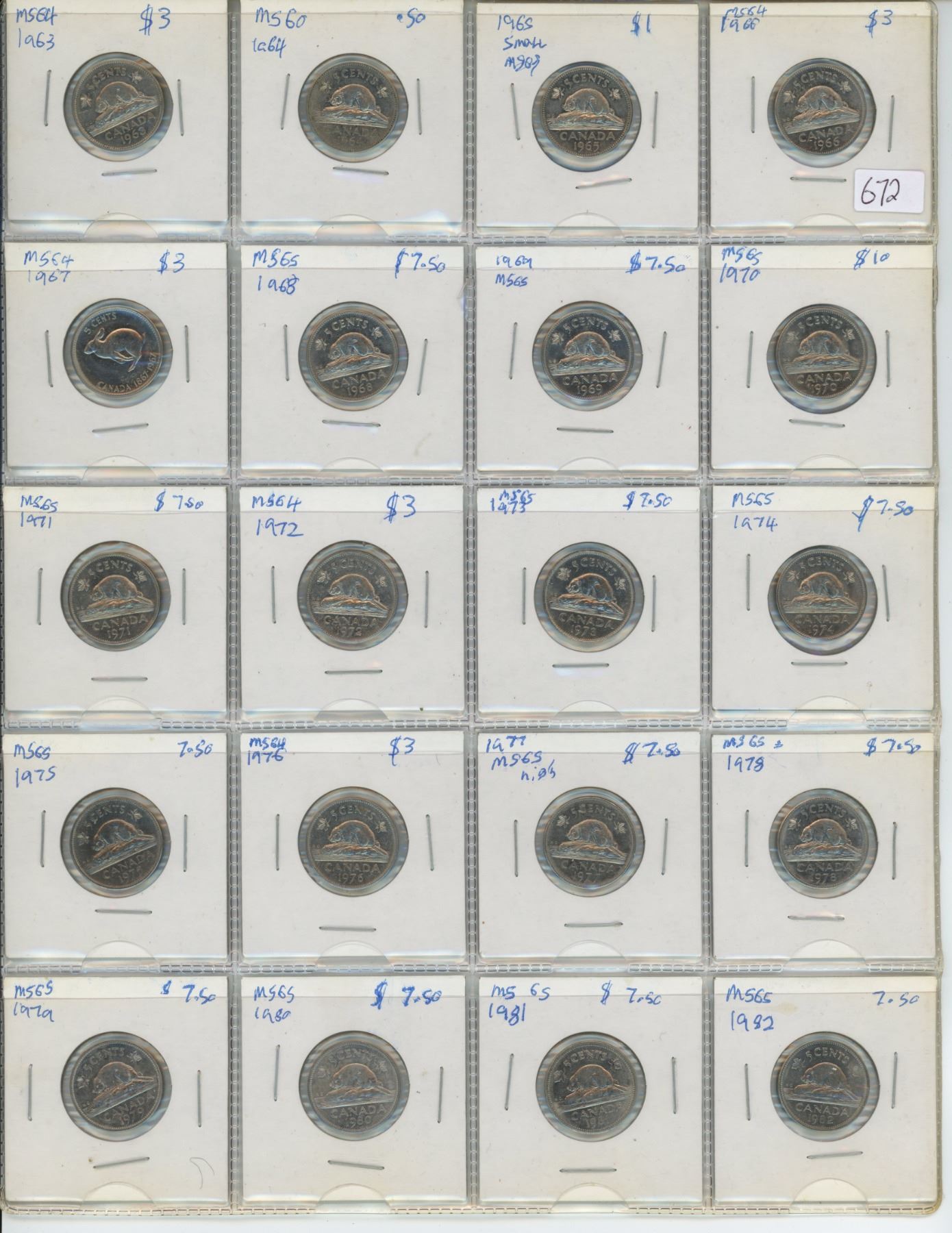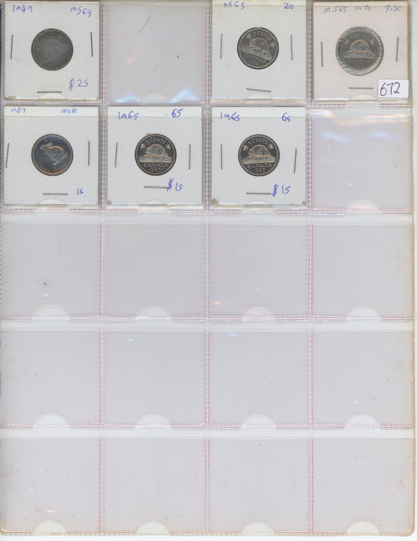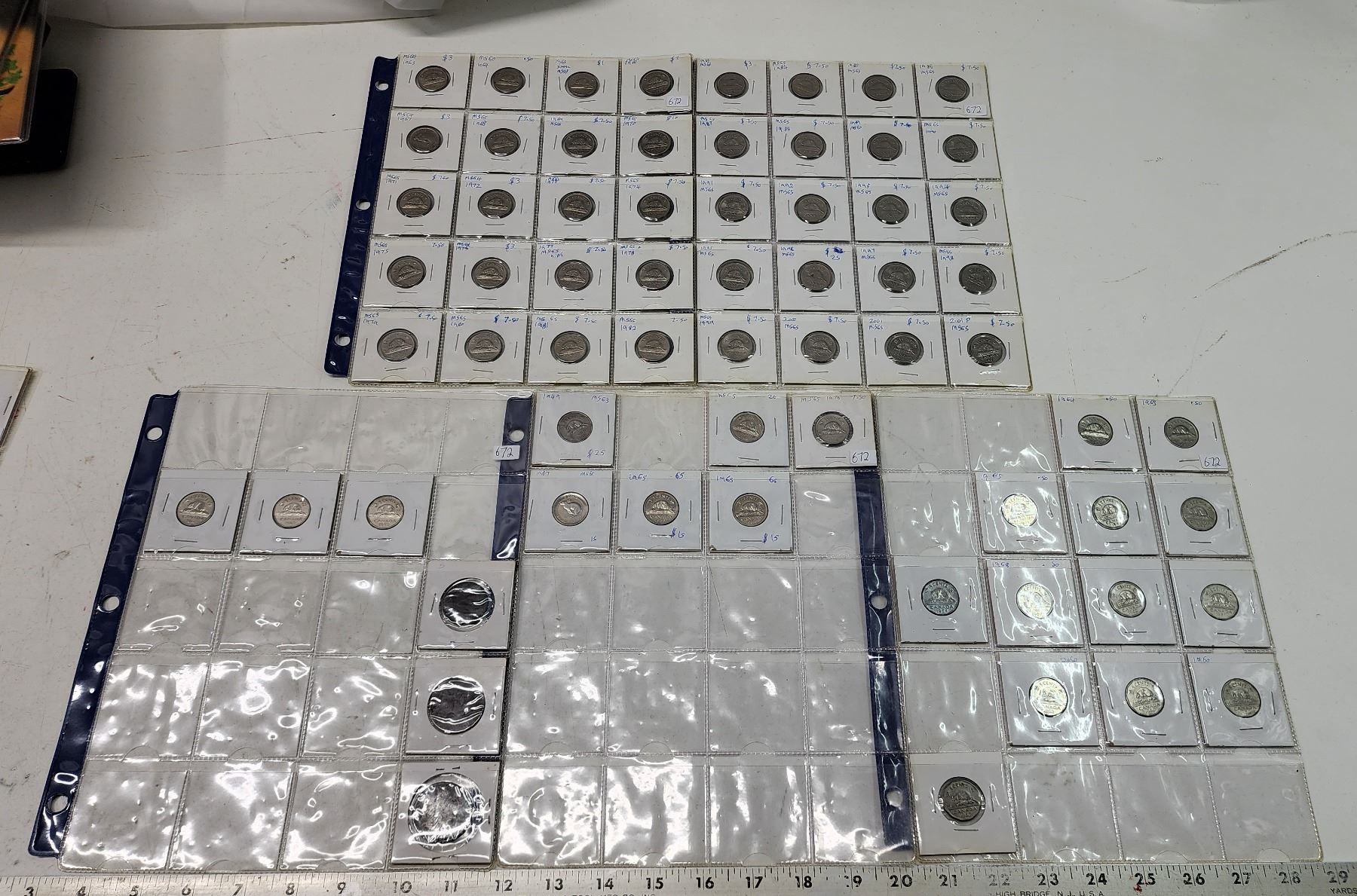 5 sleeves of assorted Canadian 5 cent coins - various years & 3 unknown coins