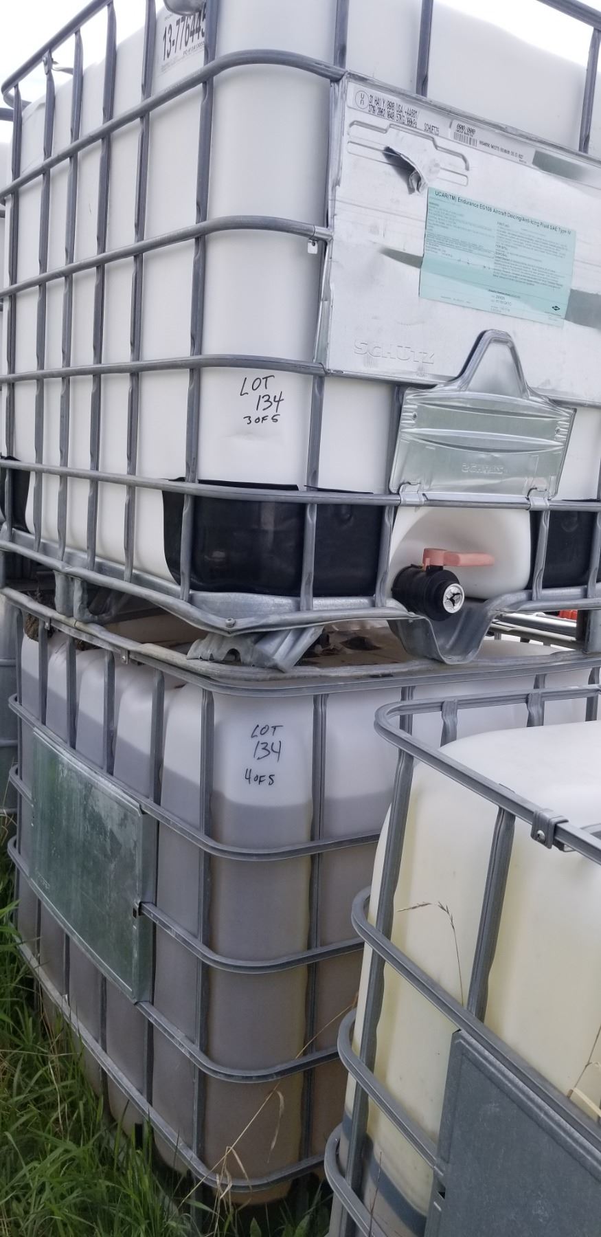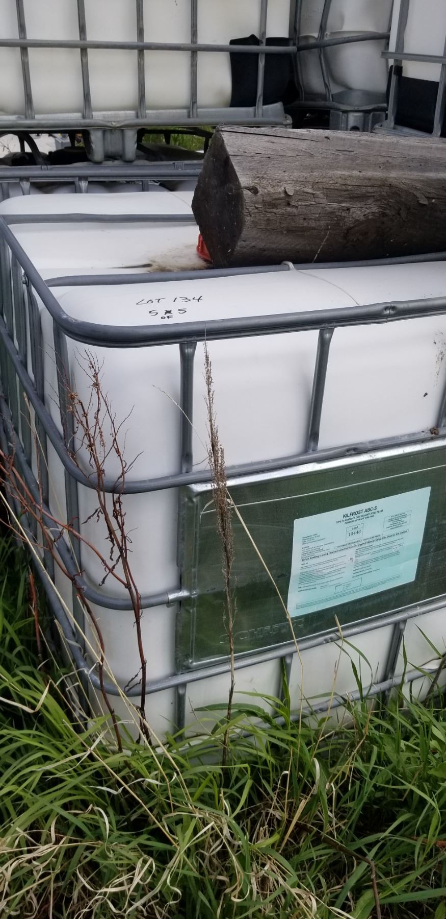 2 times 4x4 plastic liquid totes one is full of Aircraft Deicing fluid