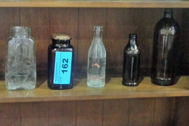 5 vintage bottles and jars