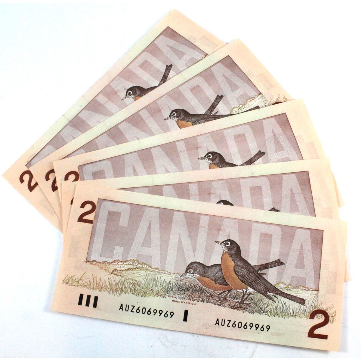 5 x 1986 $2.00 Notes, prefix AUZ with Consecutive Serial Numbers all in UNC Condition. Buyers Premium will be added on all items as per our terms of sale. We accept Paypal, Credit Card, E-Transfer Payments, Cheque or Money Orders (there is an additional 3% fee for using Paypal or Credit Card). All invoices will be emailed immediately following the auction, please contact us if you would like to pay by credit card or receive a new revised lower total for mailing in payment or sending an e-transfer (3% discount). All Items Are Sold "AS IS", no returns