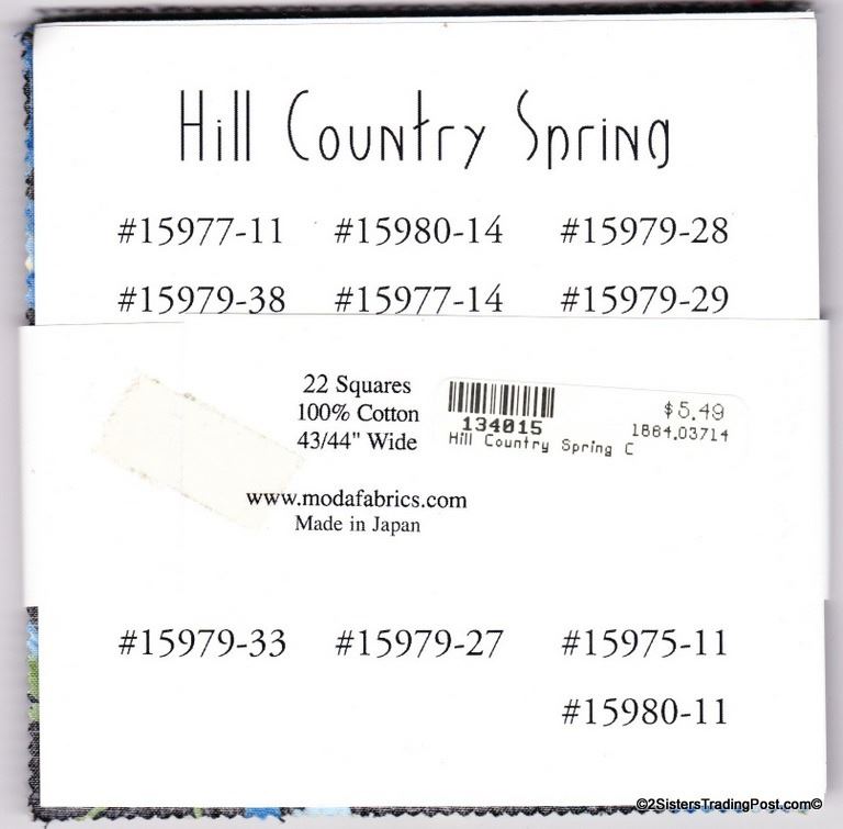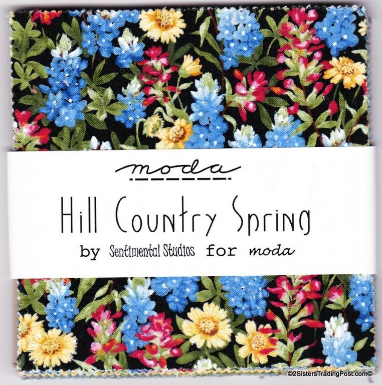 22 - 5" x 5" quilting patches 'Hill Country Spring' by Sentimental Studios for Moda fabrics. Patches are in an array of colors and are all floral patterns.