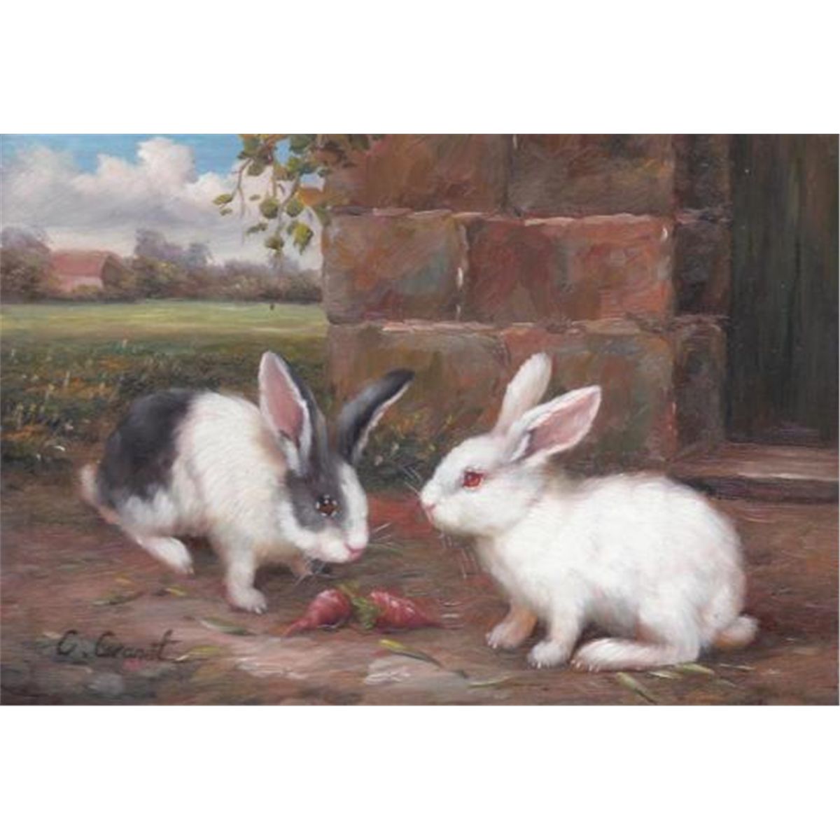 5 x 7 Oil on Board ~Bunnies at Play~ Signed C.Granet