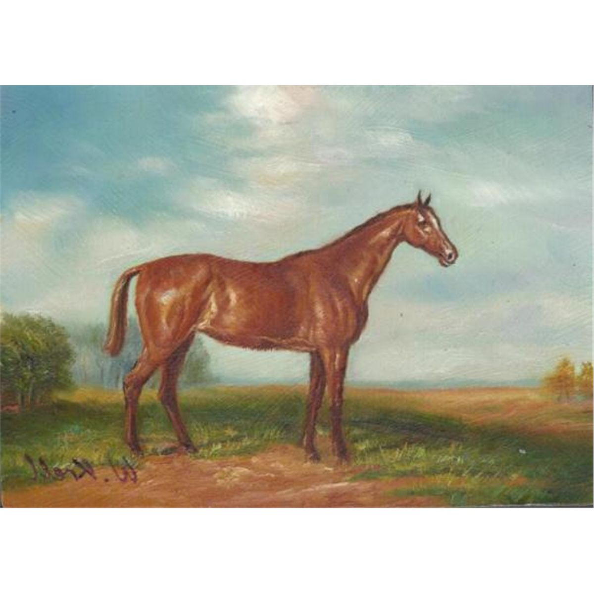 5 x 7 Oil on Board ~Horse in Pasture~ Signed W. Krell