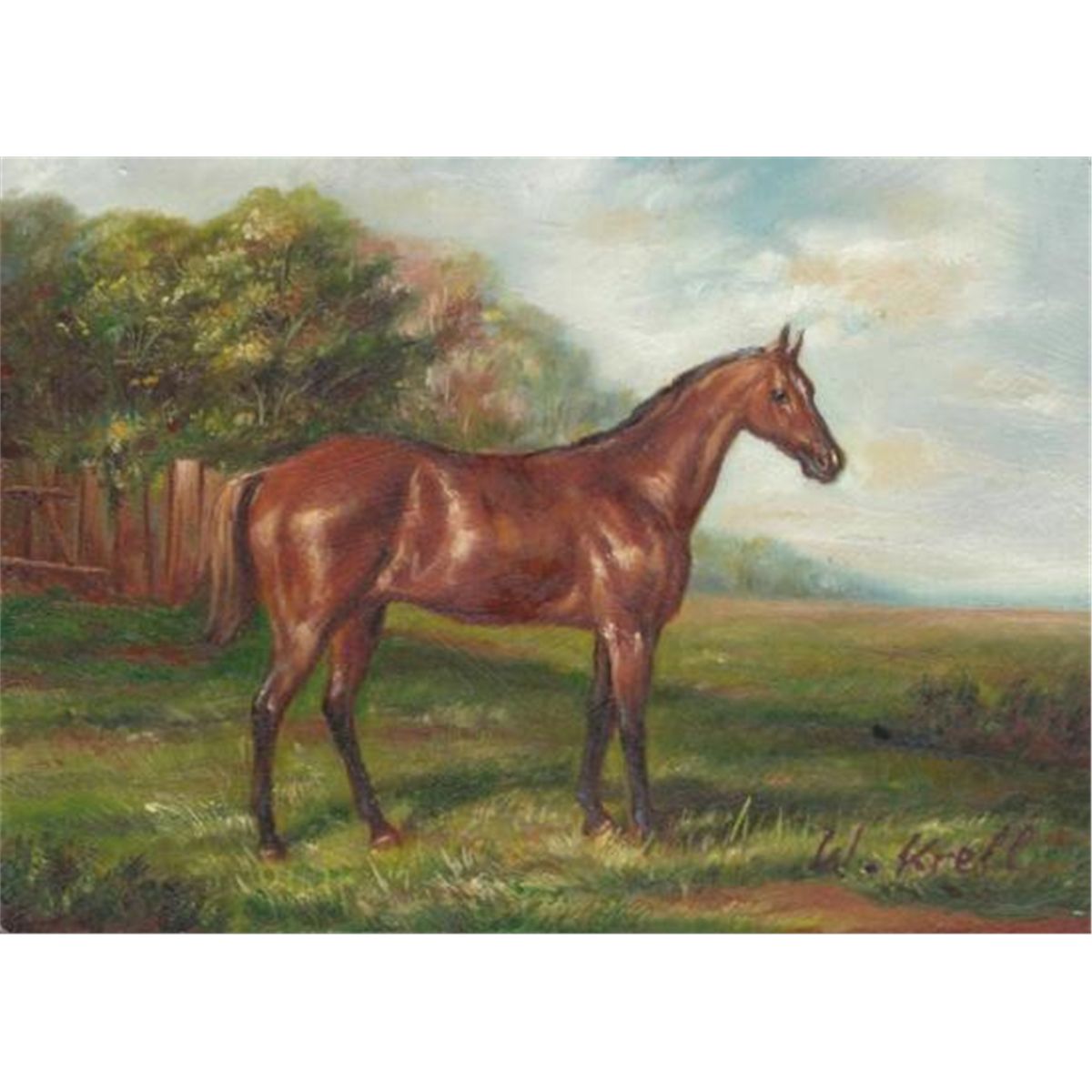 5 x 7 Oil on Board ~Horse in Pasture~ Signed W. Krell